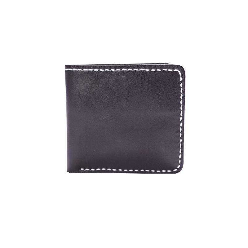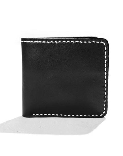 Style: Black Handmade Leather Mens billfold Wallet Bifold Card Wallets Coin Purse For Men