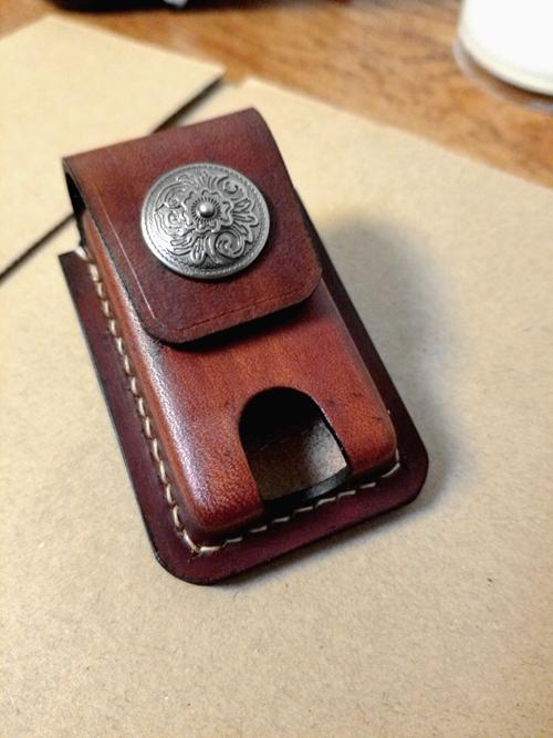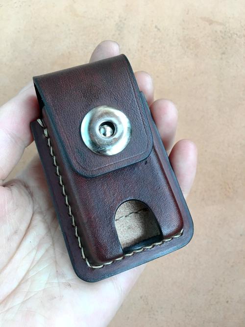 Design: Coffee Handmade Leather Mens Slim Zippo Lighter Case Slim Zippo Lighter Holder with Belt Loop for Men