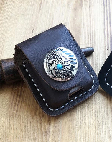 Style: Handmade Mens Black Leather Zippo Lighter Case Belt Zippo Lighter Holder with Belt Clip
