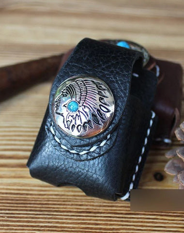 Design:?Mens Black Leather Armor Zippo Lighter Cases Handmade Tan Zippo Lighter Holder with Belt Clip