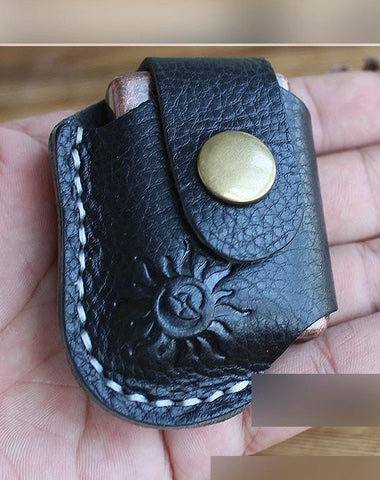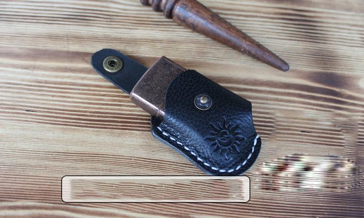 Design: Mens Black Leather Standard Zippo Lighter Cases Handmade Tan Zippo Lighter Holder with Belt Loop