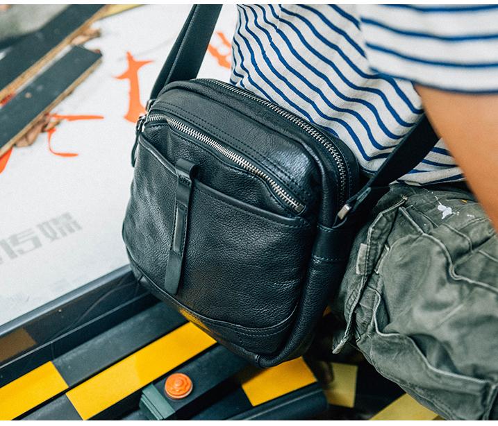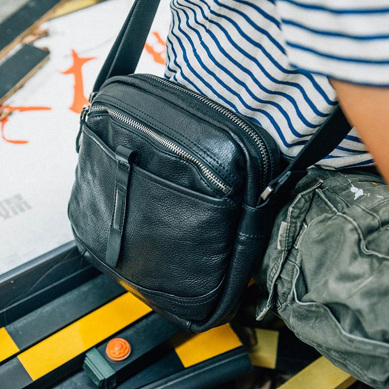 Style: Black Handmade RetroLeather Men Large Shoulder Bag Light Brown Messenger Bag Crossbody Bag For Men