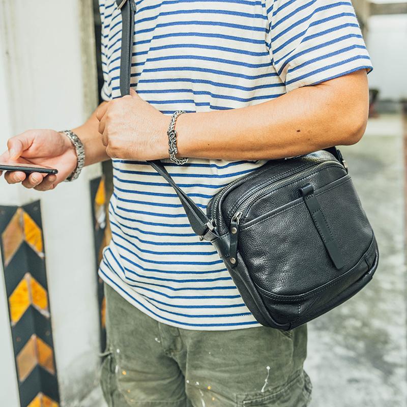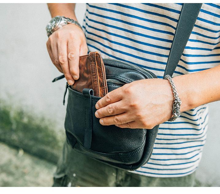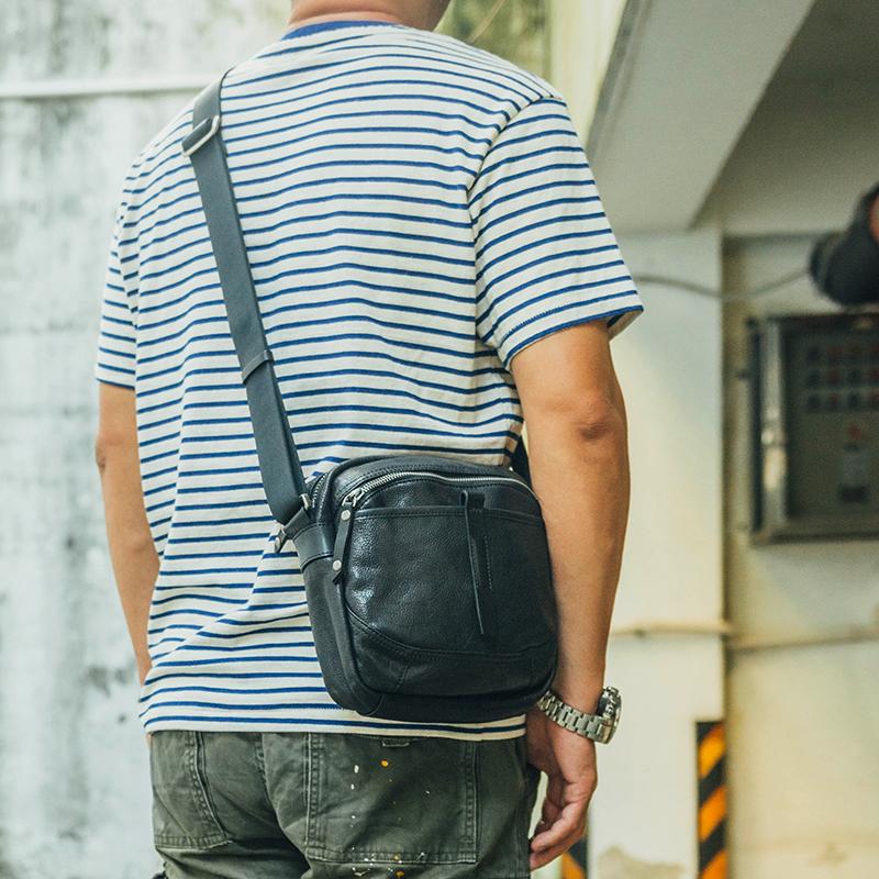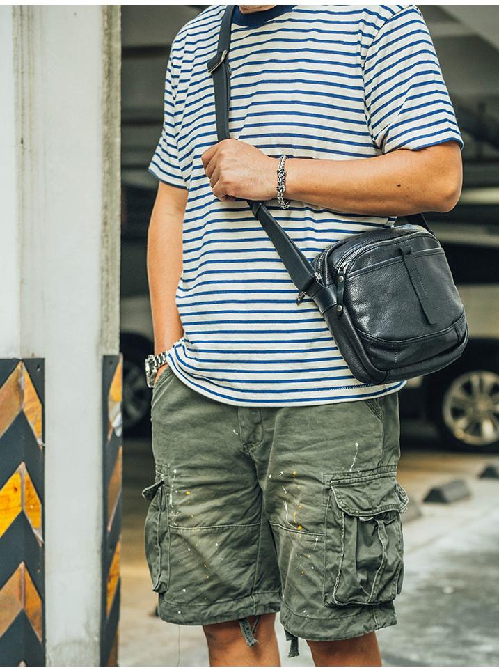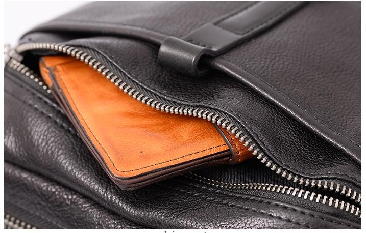 Design: Black Handmade RetroLeather Men Large Shoulder Bag Light Brown Messenger Bag Crossbody Bag For Men