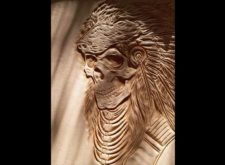 Design: Black Handmade Tooled Indian Chief Skull Leather Mens Long Wallet Bifold Long Wallet For Men