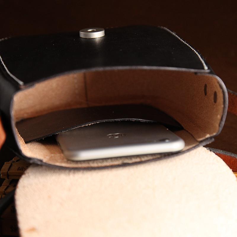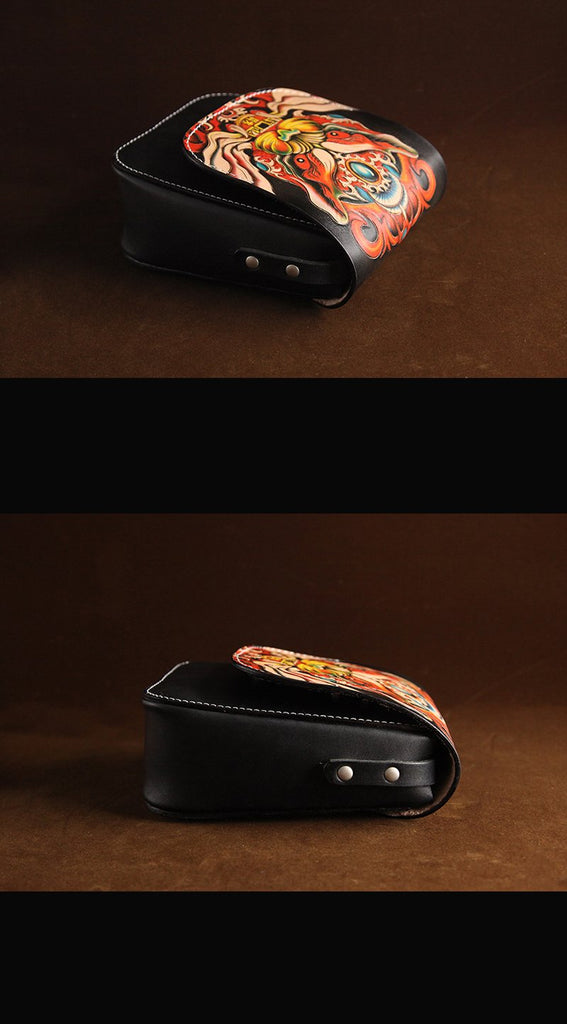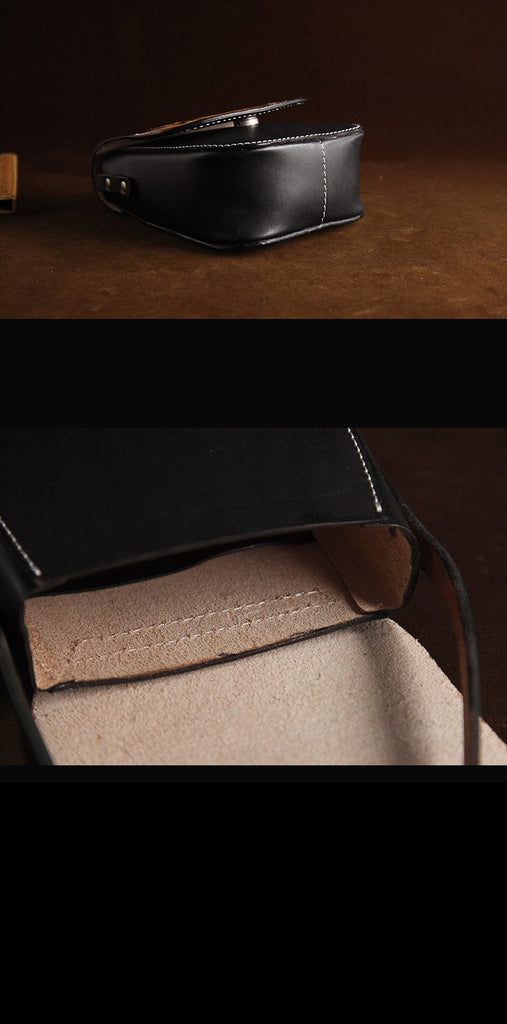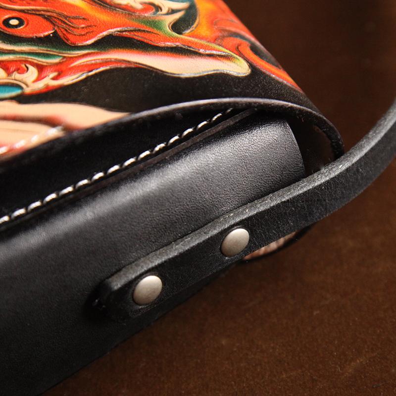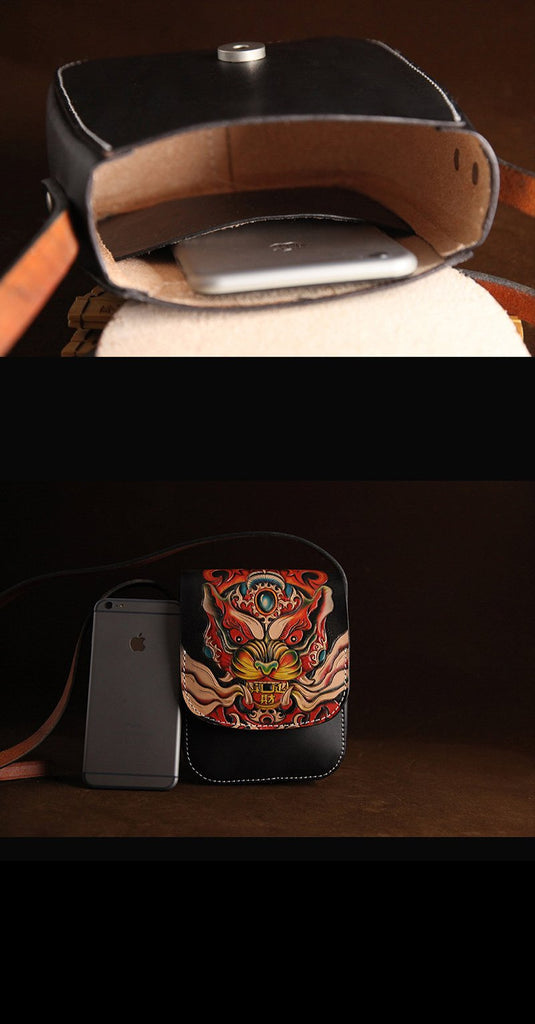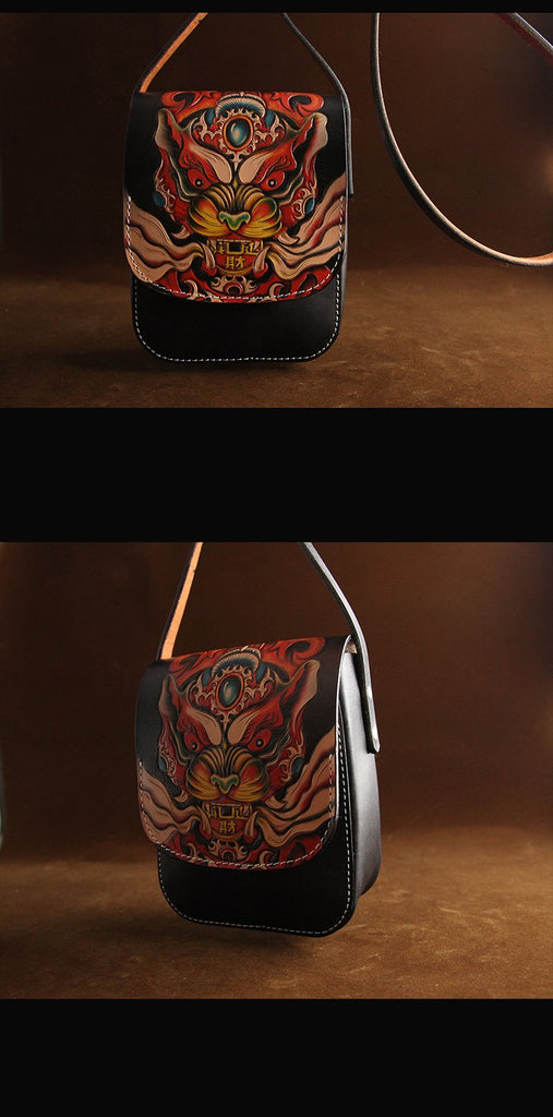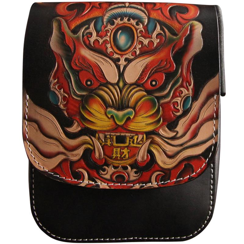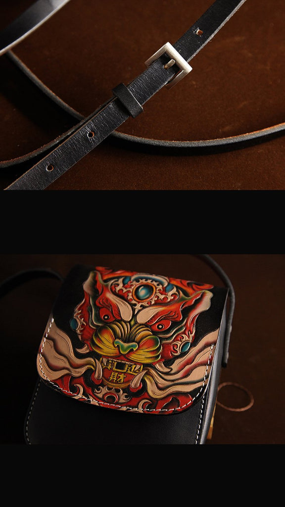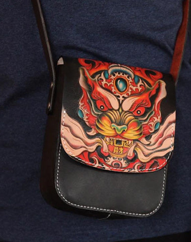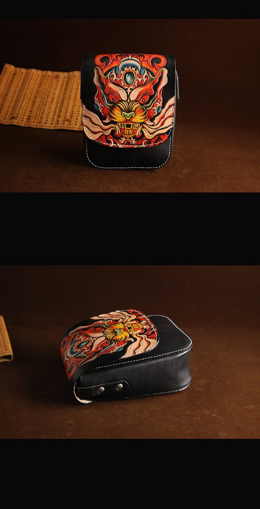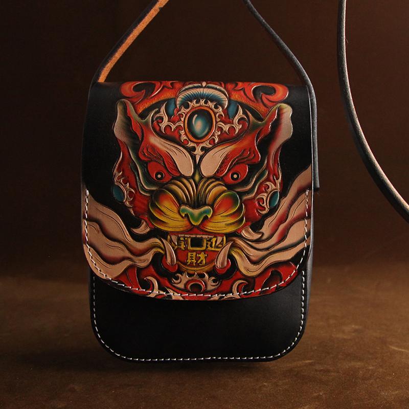 Style: Black Handmade Tooled Leather Monster Small Vertical Courier Bag Messenger Bag For Men
