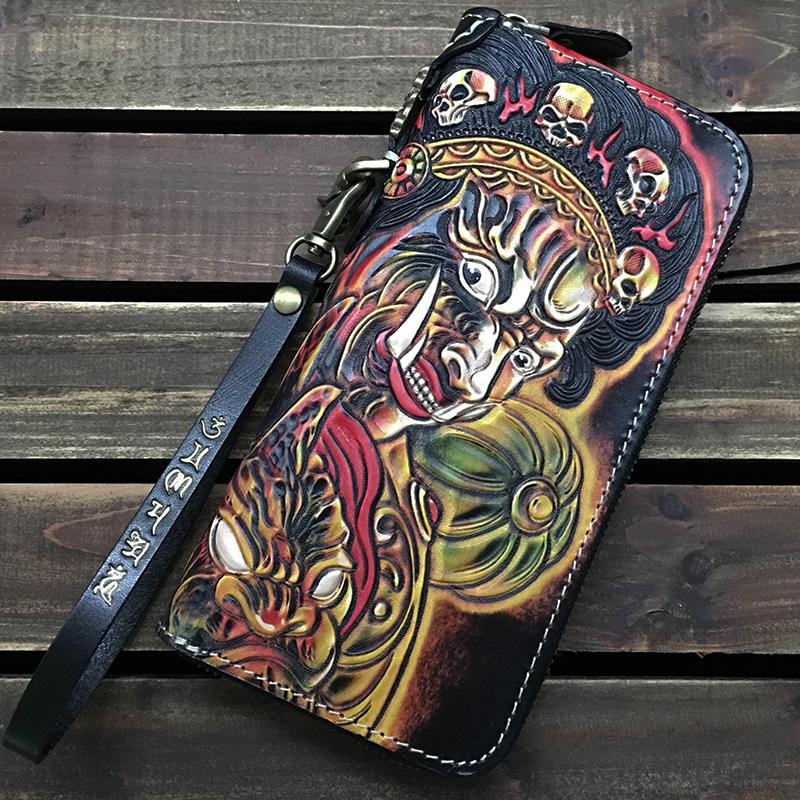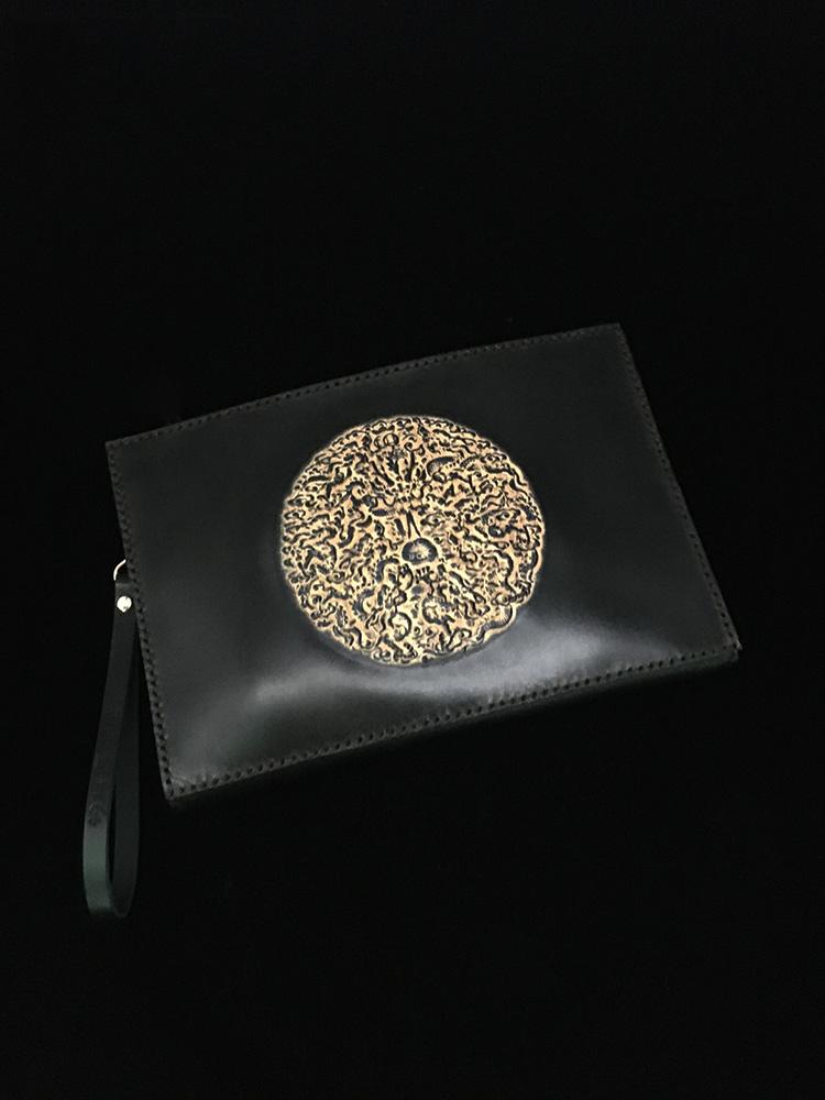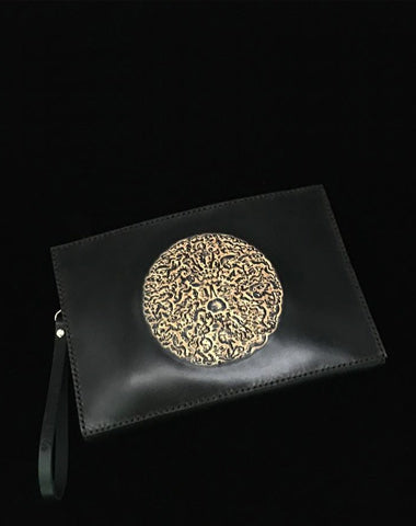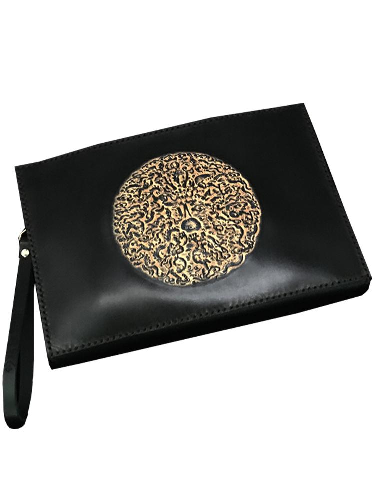 Design: Black Handmade Tooled Leather Totem Clutch Wallet Wristlet Bags Clutch Purse For Men
