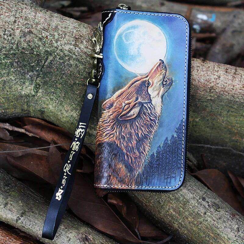 Style: Black Handmade Tooled Leather Totem Clutch Wallet Wristlet Bags Clutch Purse For Men