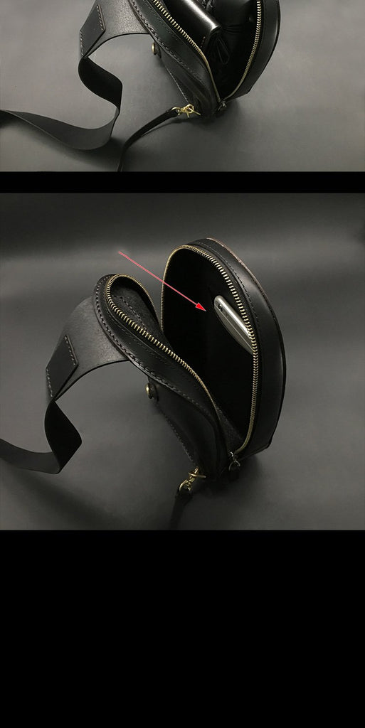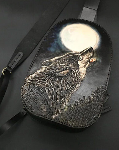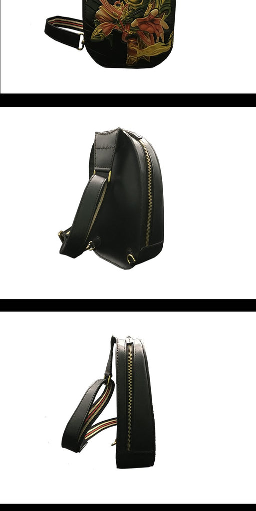 Style: Black Handmade Tooled Leather Monkey King Sling Bag Chest Bag One Shoulder Backpack For Men