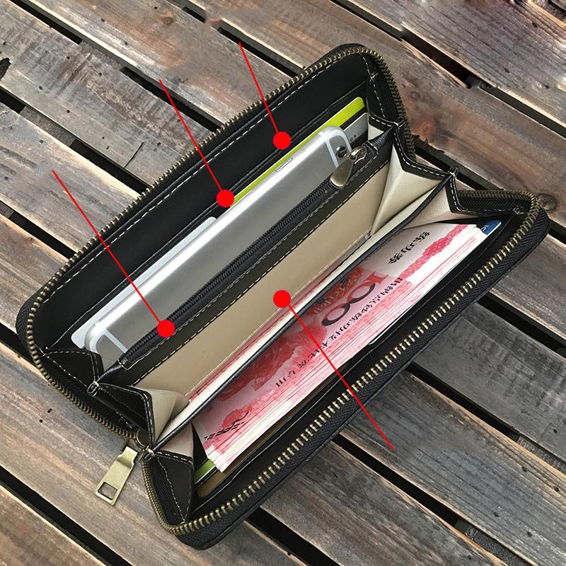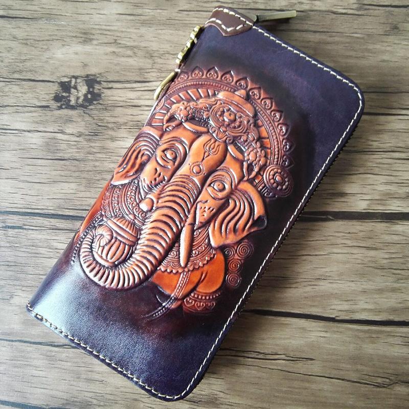 Style: Black Handmade Tooled Tang Lion Leather Long Wallet Zipper Wallet Clutch Wallet For Men
