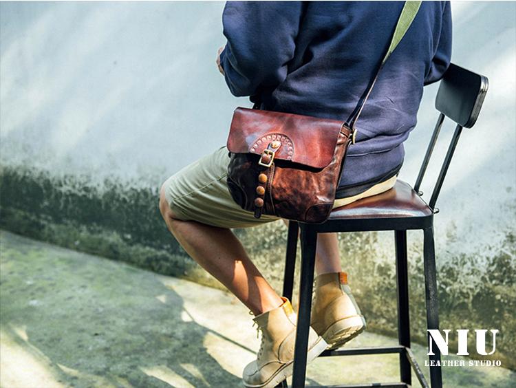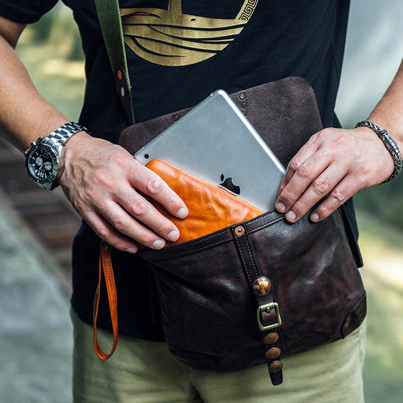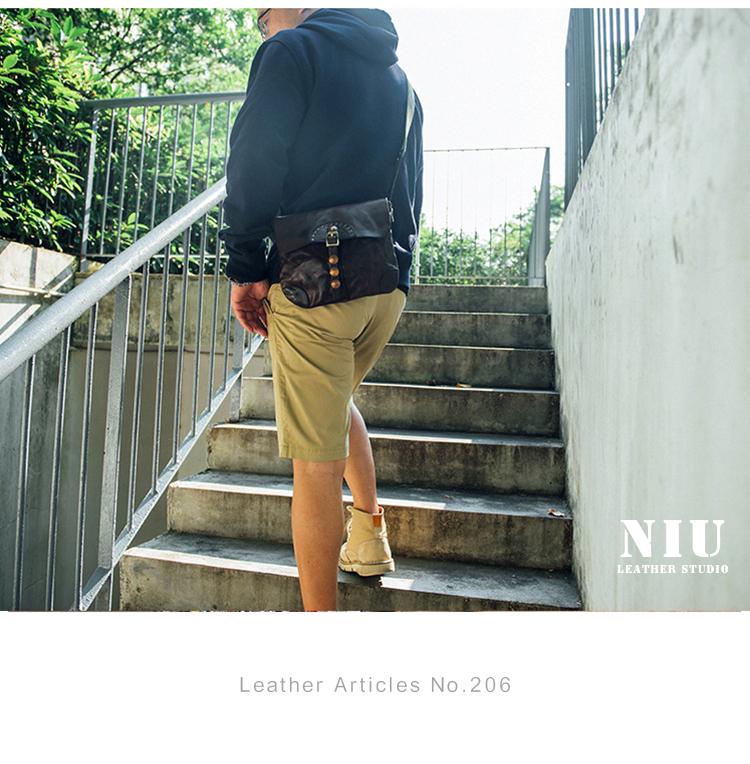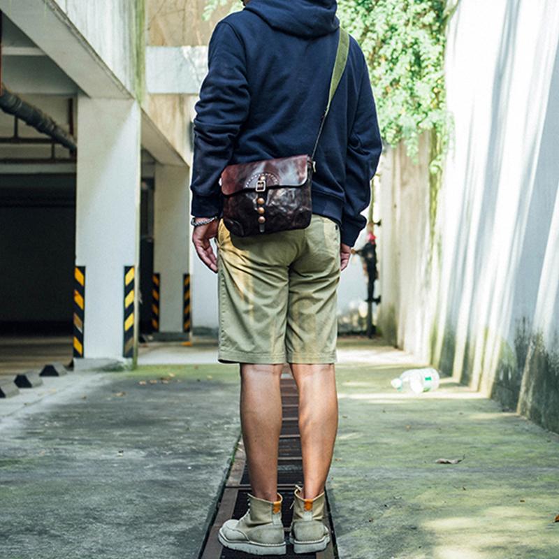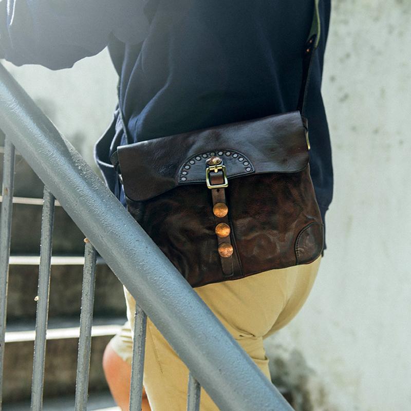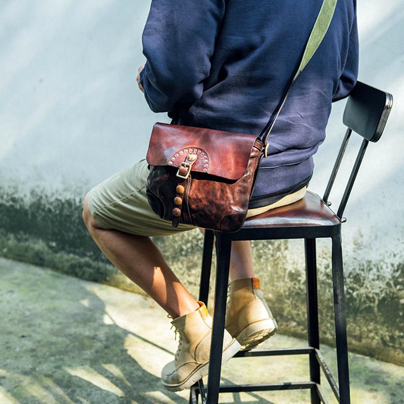 Style: Black Handmade Wrinkled Leather Men 8 inches Shoulder Bag Brown Messenger Bag Side Bag For Men