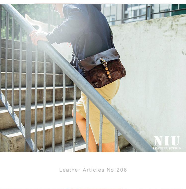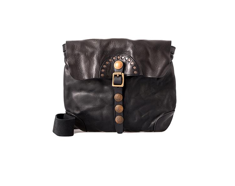 Design: Black Handmade Wrinkled Leather Men 8 inches Shoulder Bag Brown Messenger Bag Side Bag For Men