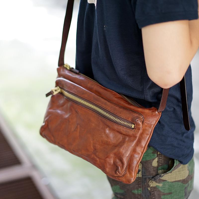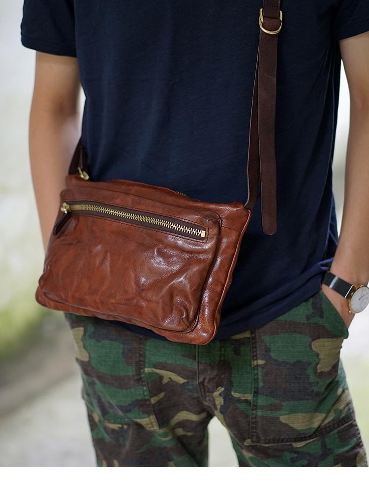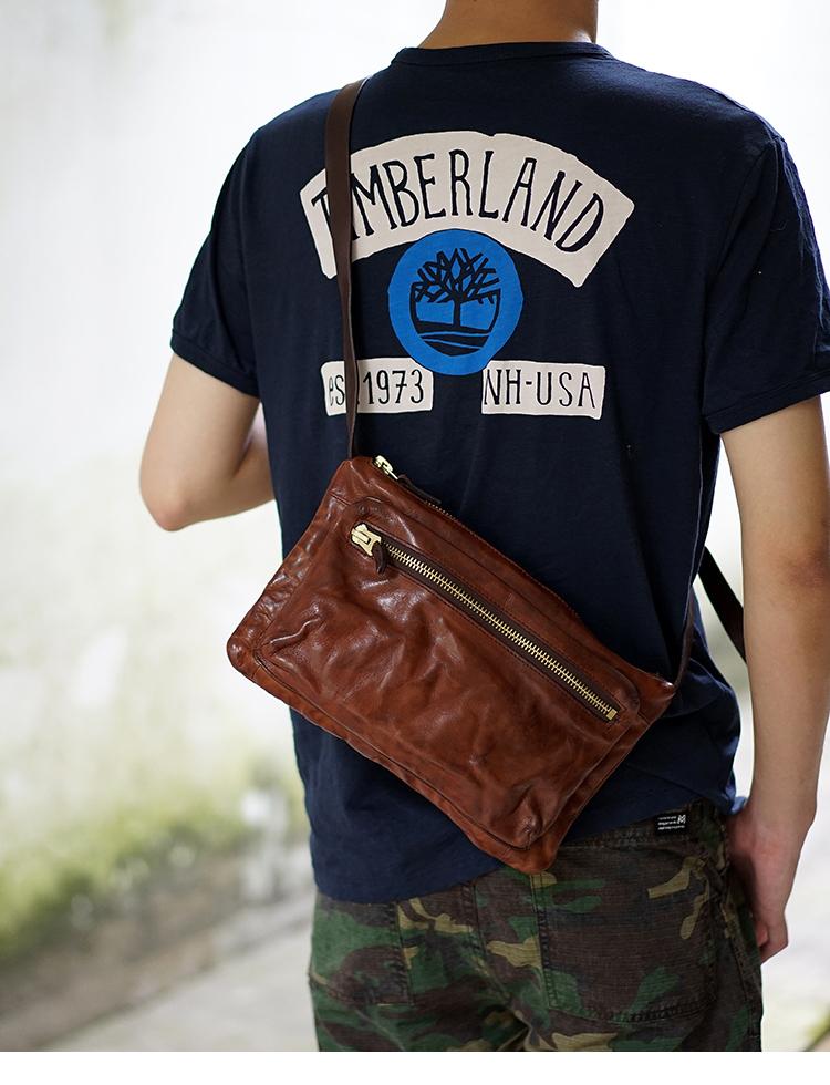 Design: Black Handmade Wrinkled Leather Men Large Shoulder Bag Brown Messenger Bag Crossbody Bag For Men