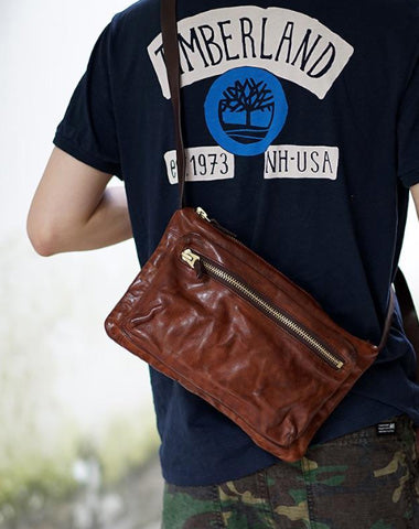 Style: Black Handmade Wrinkled Leather Men Large Shoulder Bag Brown Messenger Bag Crossbody Bag For Men