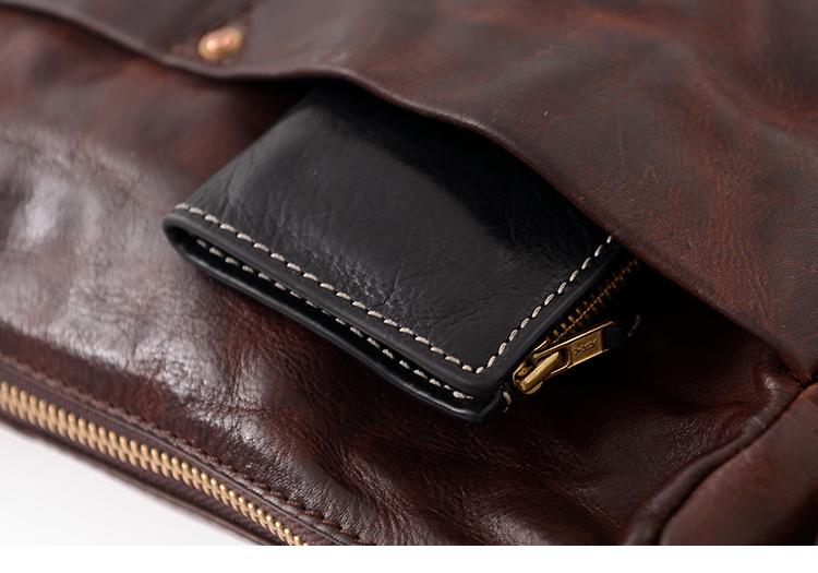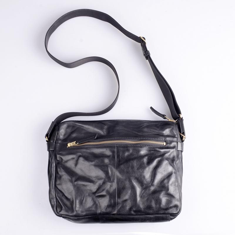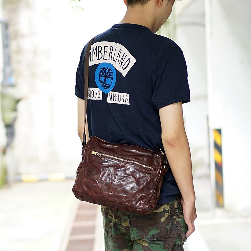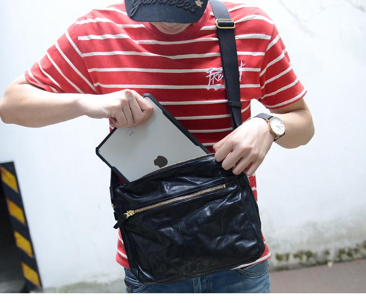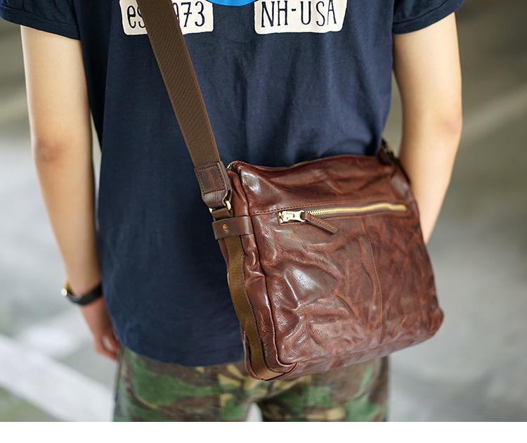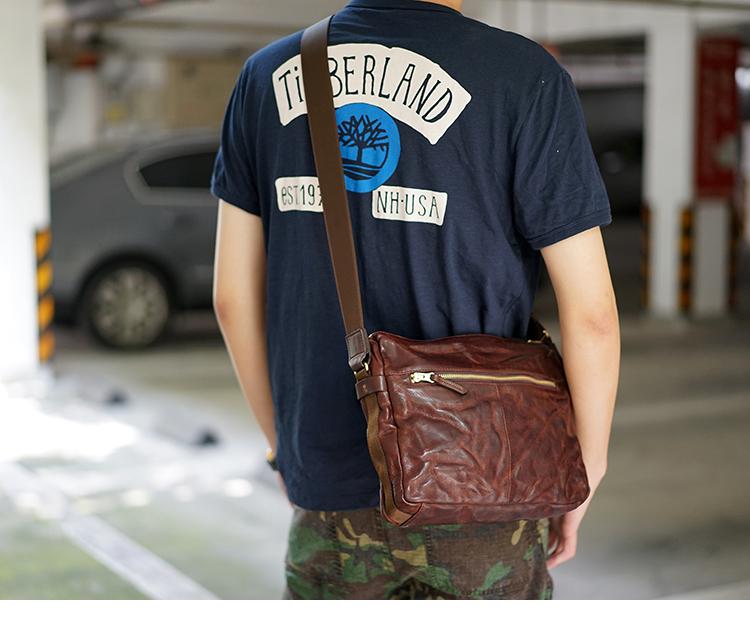 Design: Black Handmade Wrinkled Leather Men Large Shoulder Bag Brown Messenger Bag One Shoulder Backpack For Men