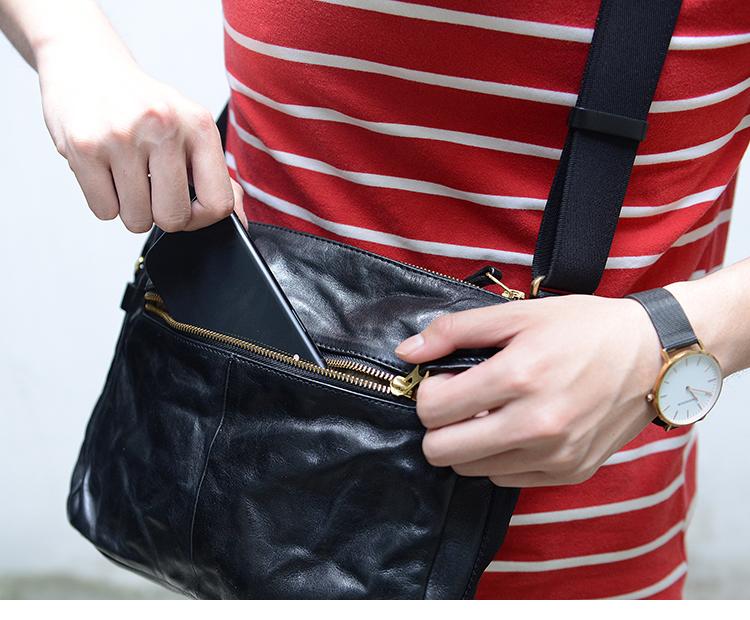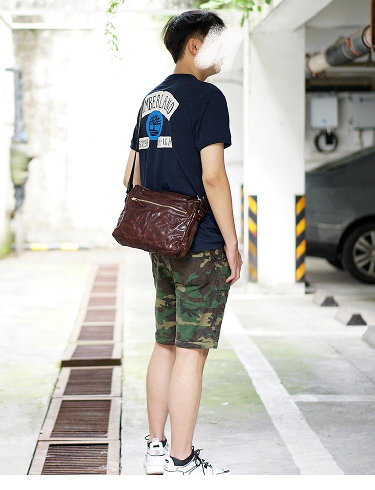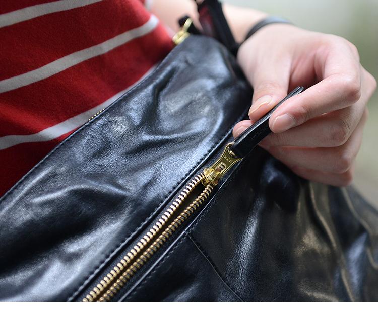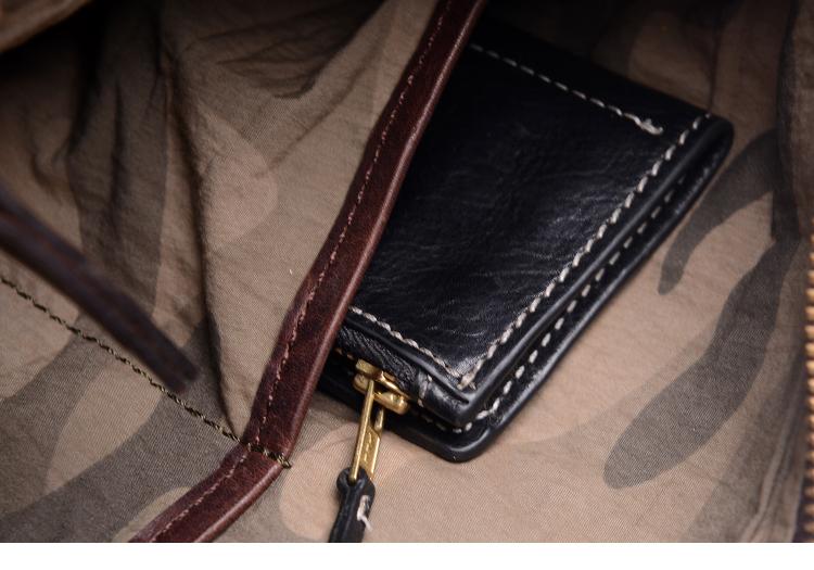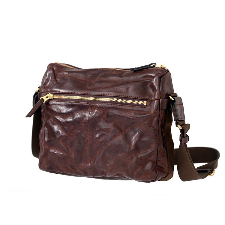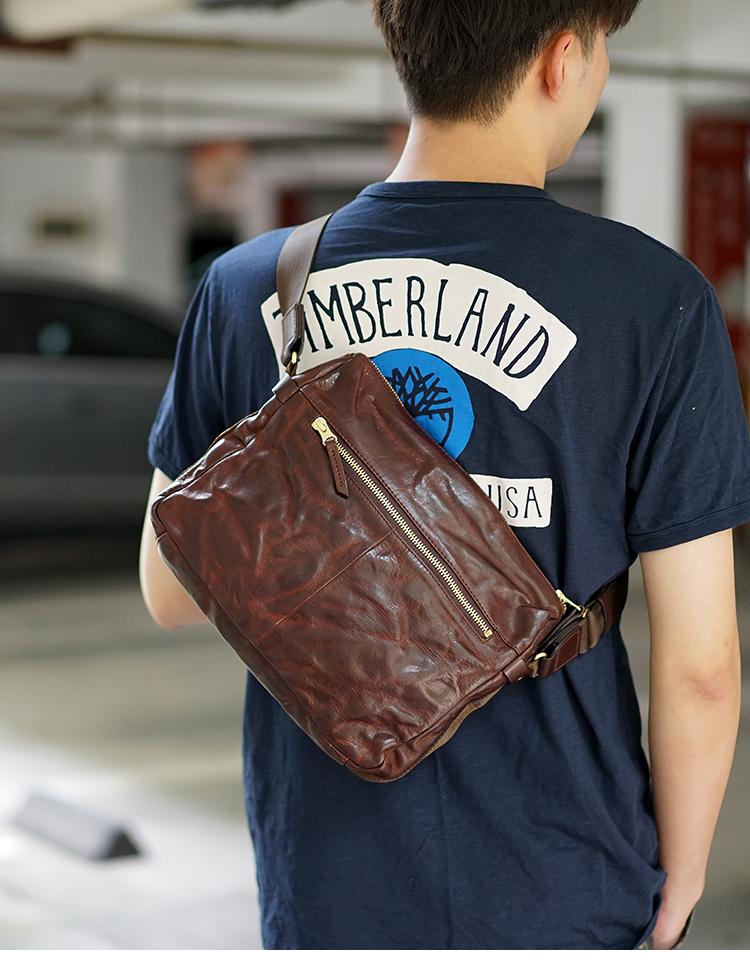 Design: Black Handmade Wrinkled Leather Men Large Shoulder Bag Brown Messenger Bag One Shoulder Backpack For Men