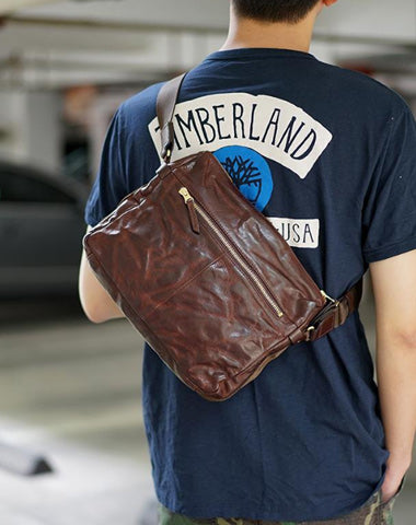 Style: Black Handmade Wrinkled Leather Men Large Shoulder Bag Brown Messenger Bag One Shoulder Backpack For Men