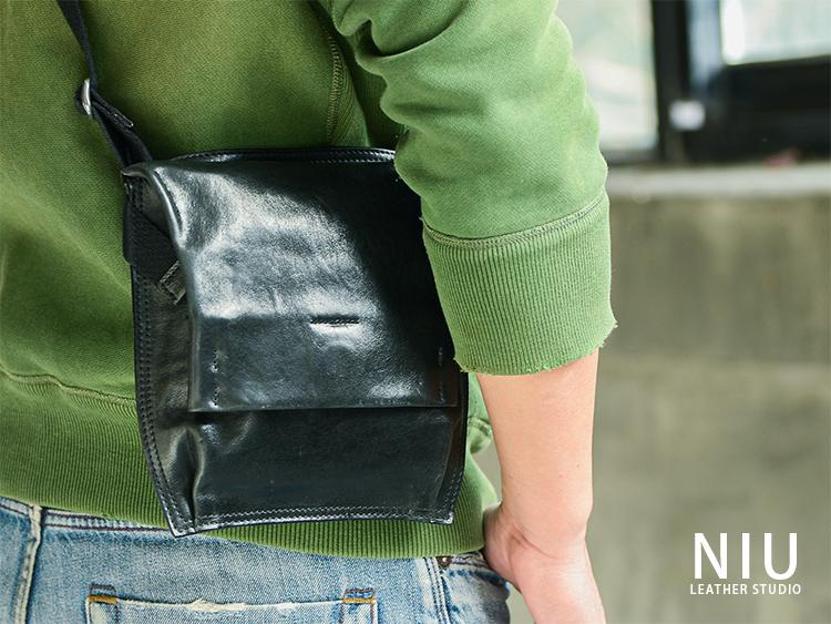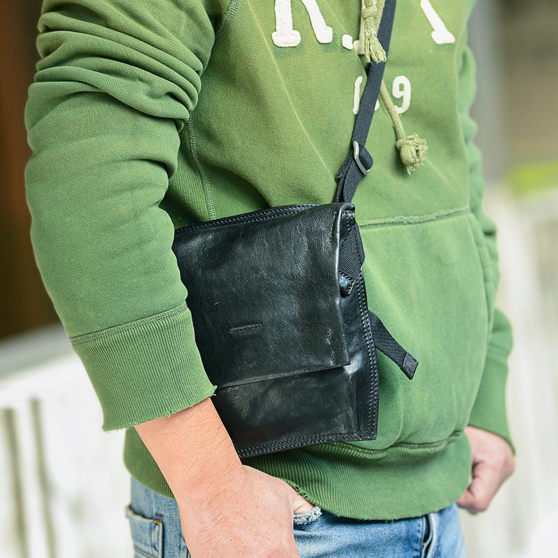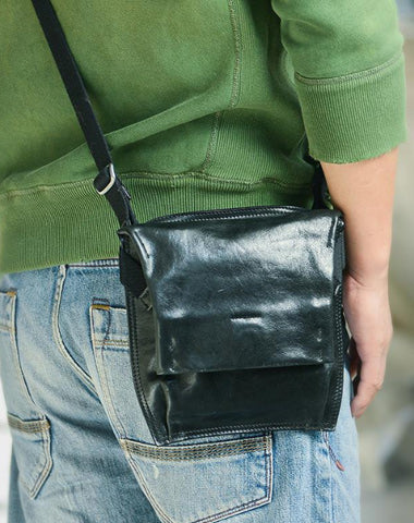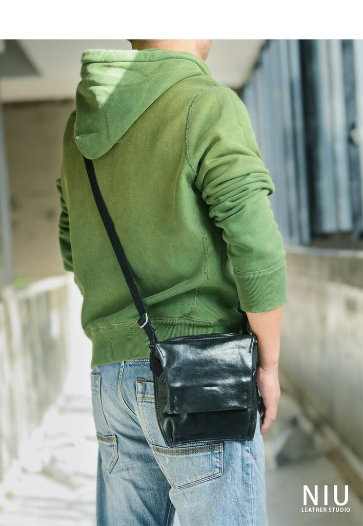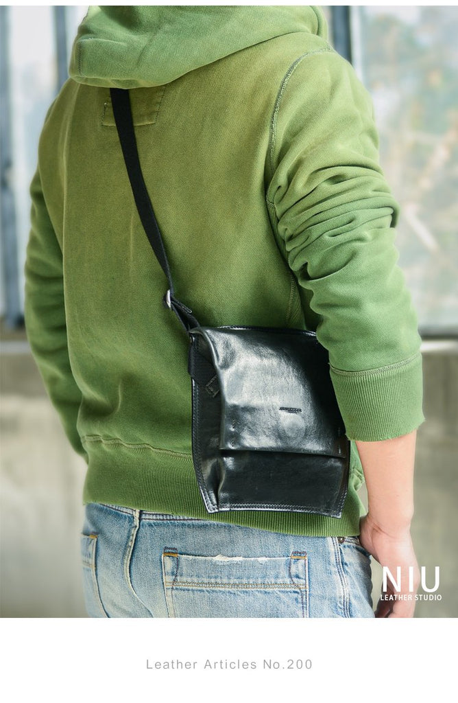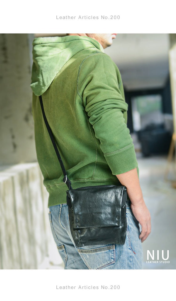 Style: Black Handmade Wrinkled Leather Men Vertical Shoulder Bag Brown Messenger Bag Side Bag For Men