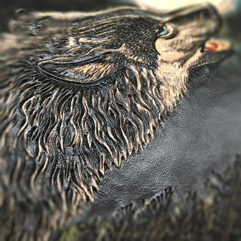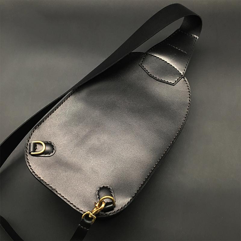 Design: Black Handmade Tooled Leather Sling Bag Chest Bag Wolf One Shoulder Backpack For Men