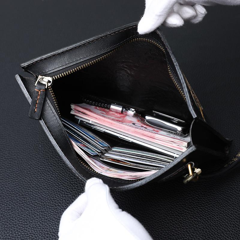 Style: Black Handmade Tooled Leather Chinese Dragon Clutch Wallet Wristlet Bag Clutch Purse For Men