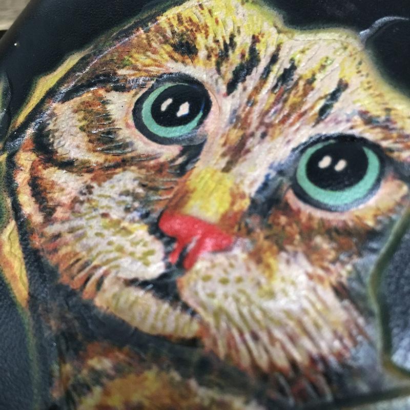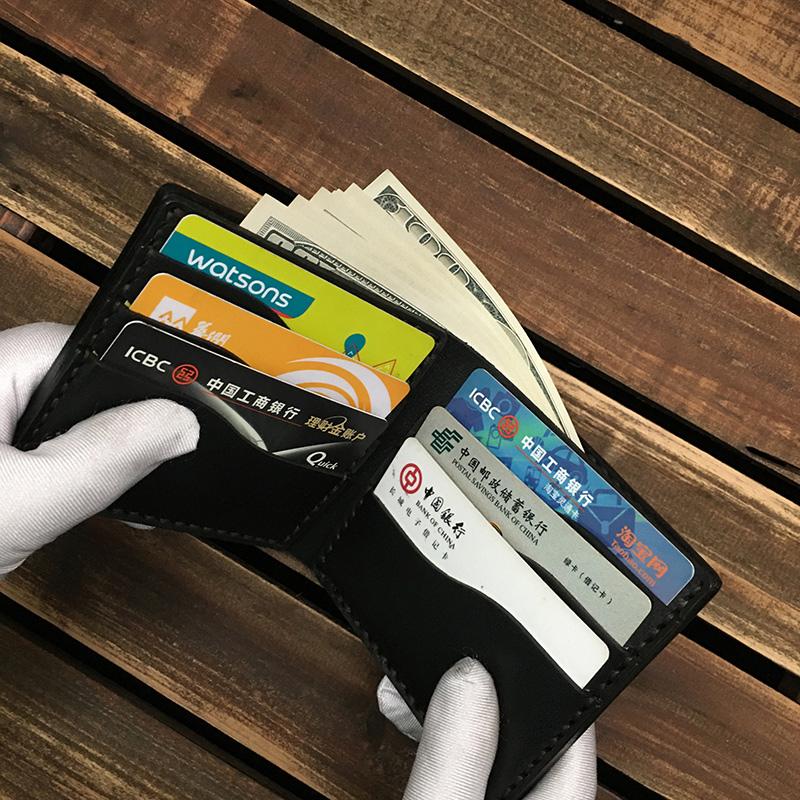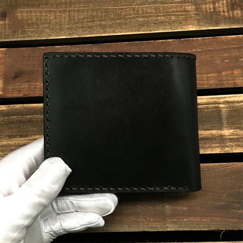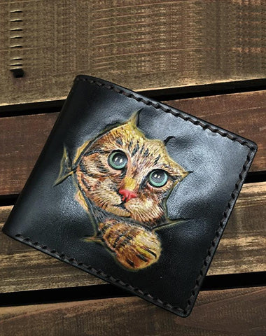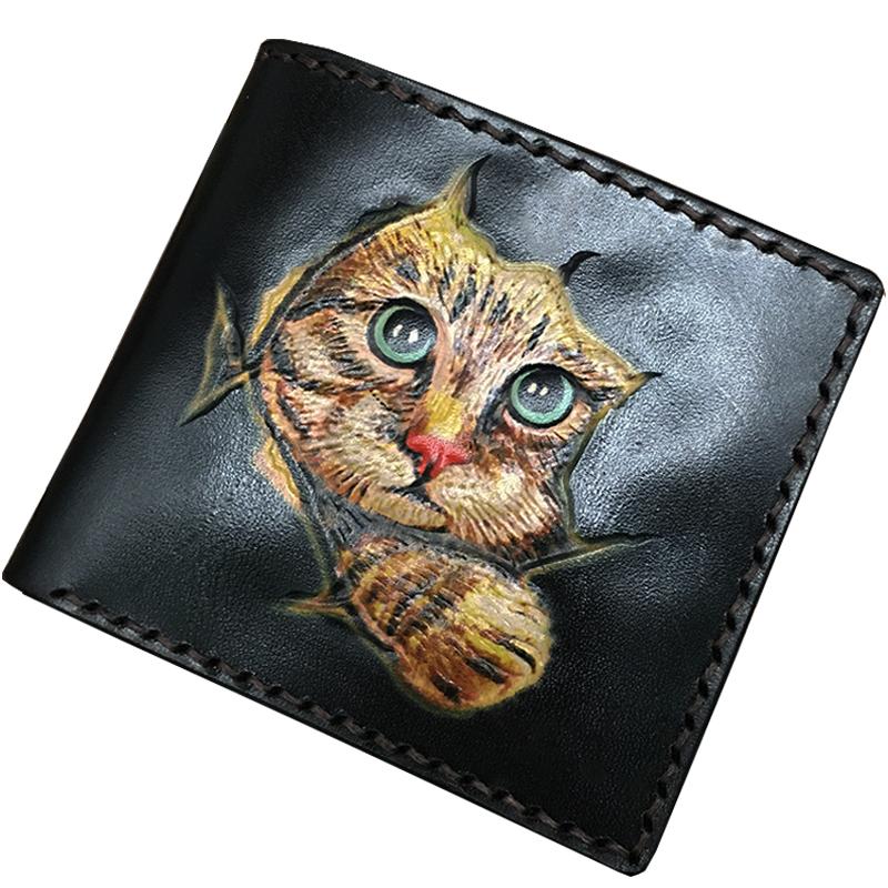 Style: Handmade Black Tooled Leather Kitten Wolf Bifold billfold Wallet Small Wallet For Men