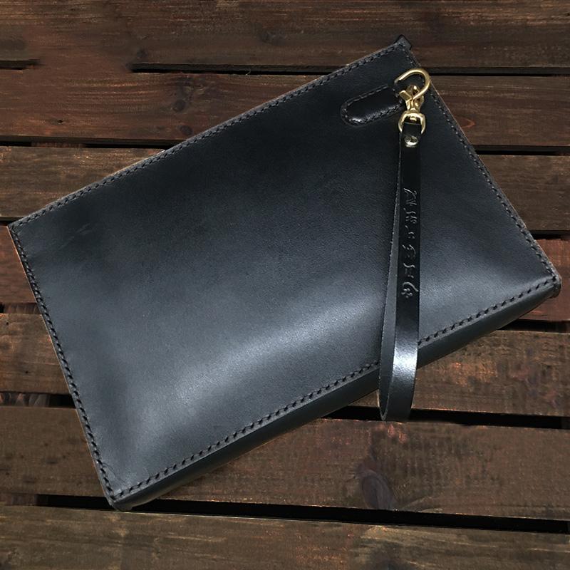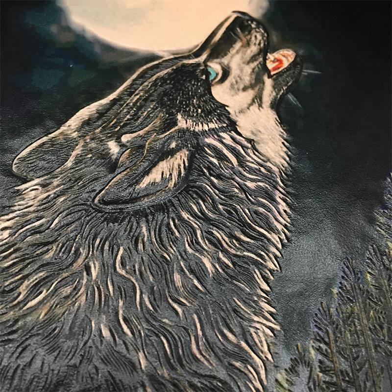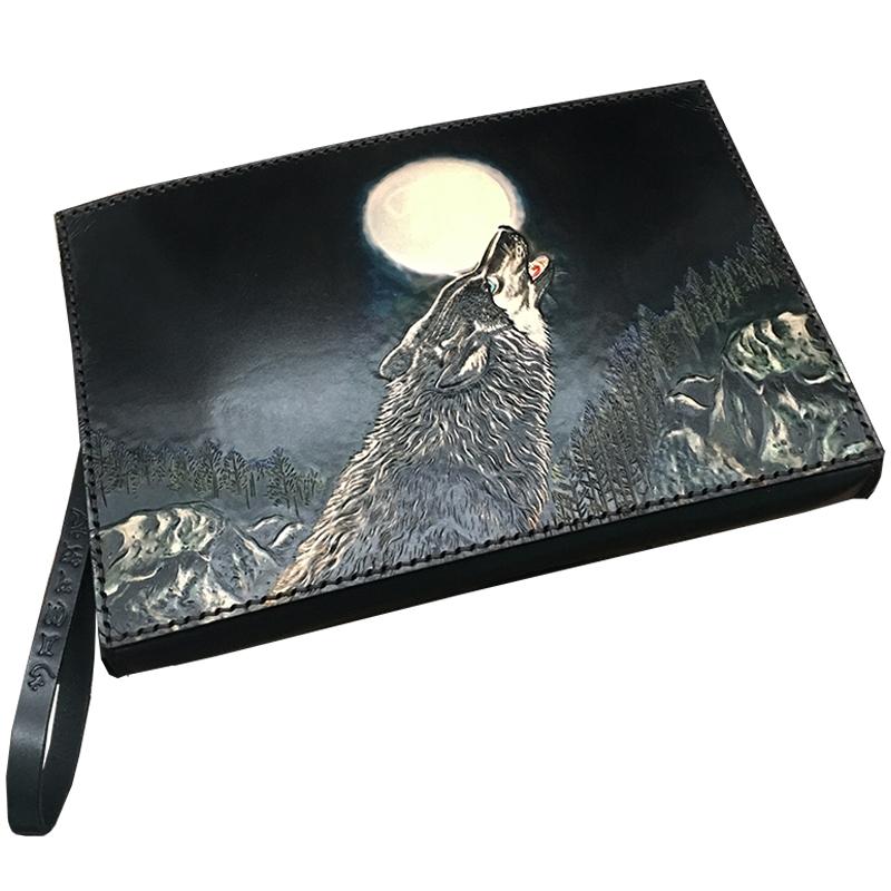 Design: Black Handmade Tooled Leather Wolf Clutch Wallet Wristlet Bag Clutch Purse For Men
