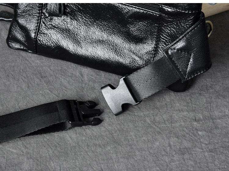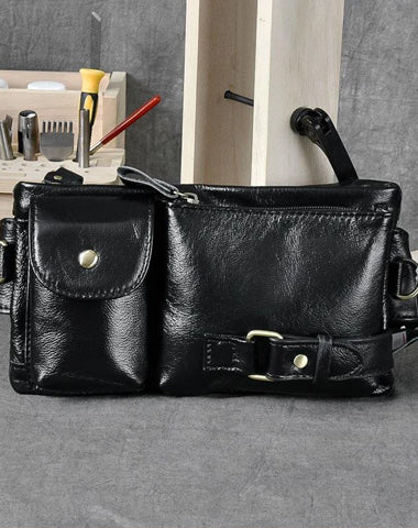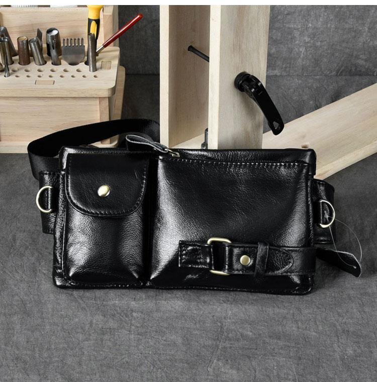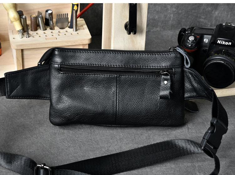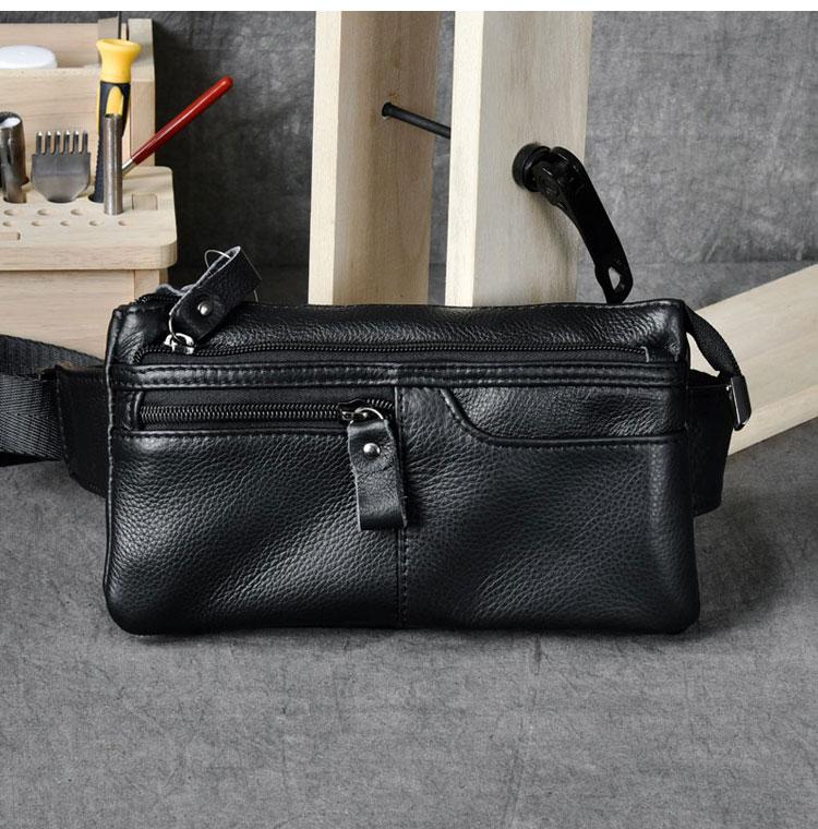 Design: Black Leather Fanny Pack Mens Waist Bag Hip Pack Belt Bag for Men