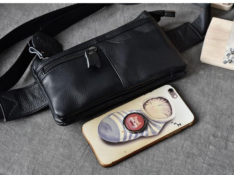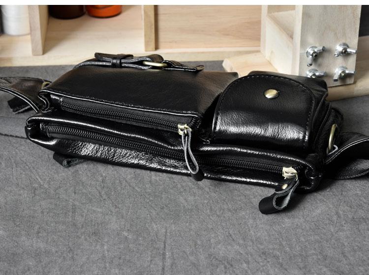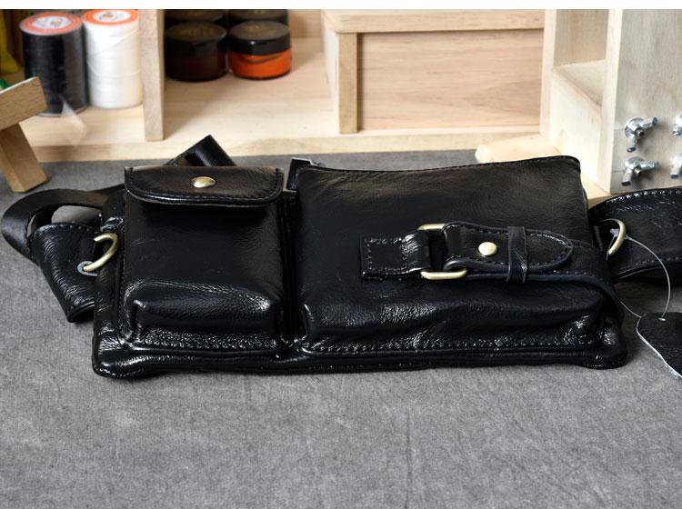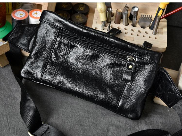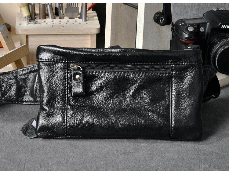Design: Black Leather Fanny Pack Mens Waist Bag Hip Pack Belt Bag for Men