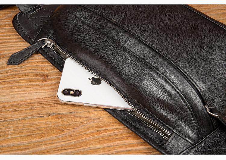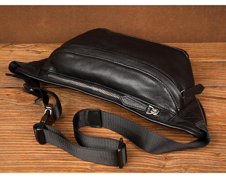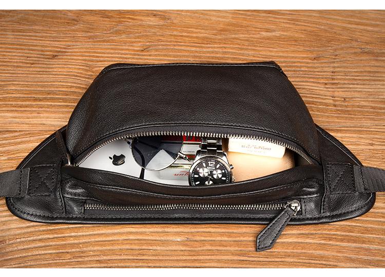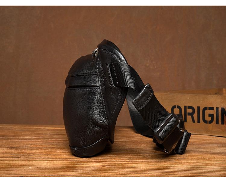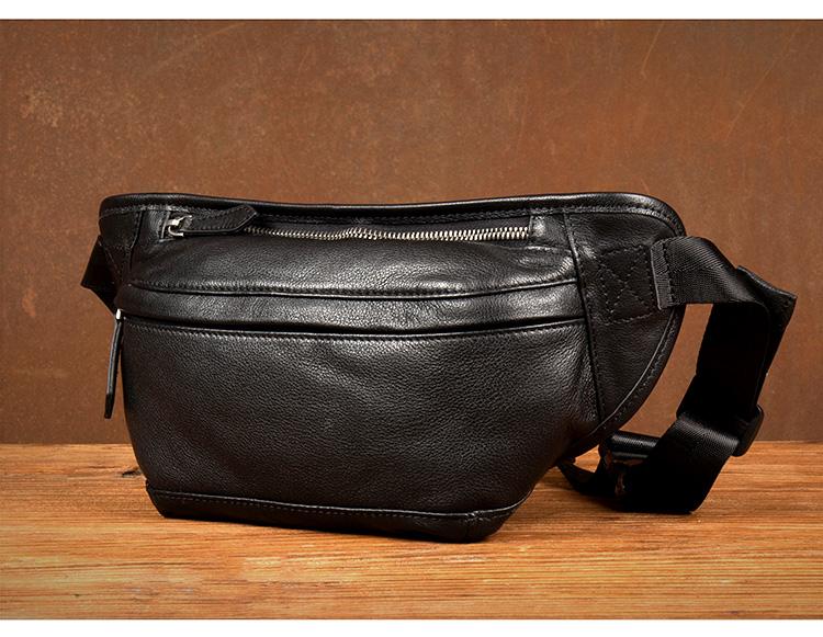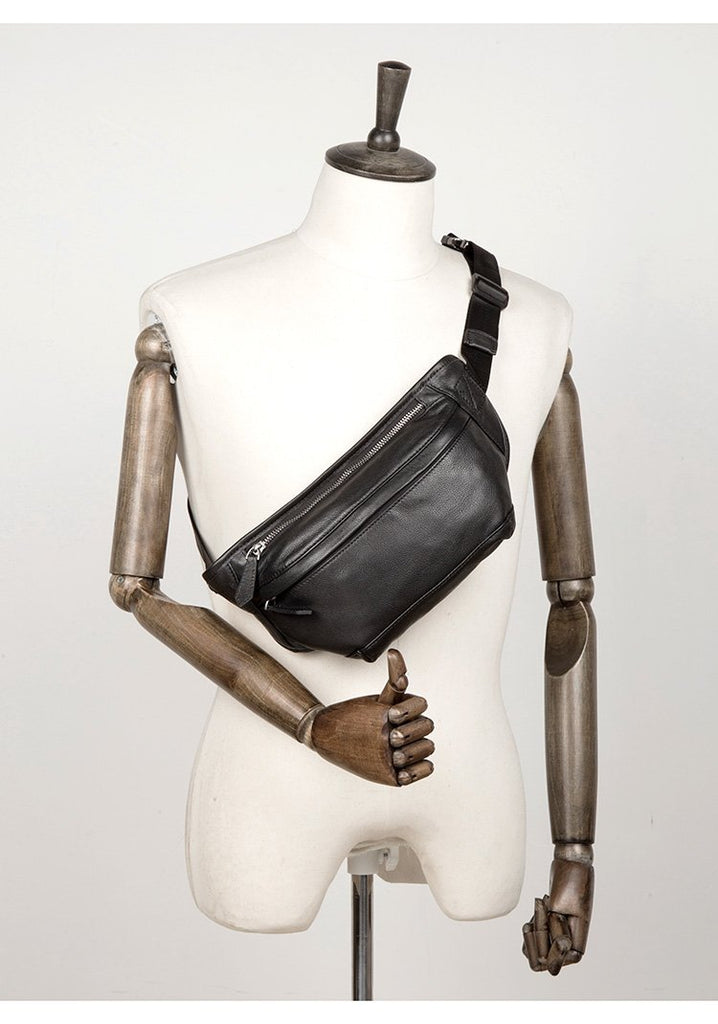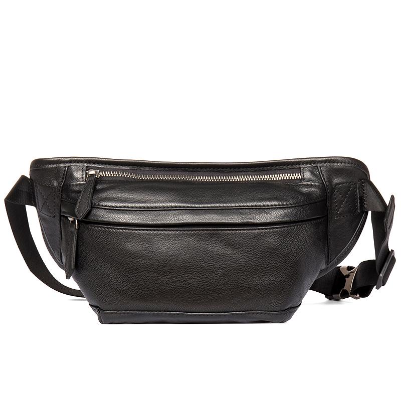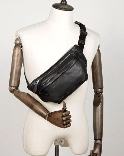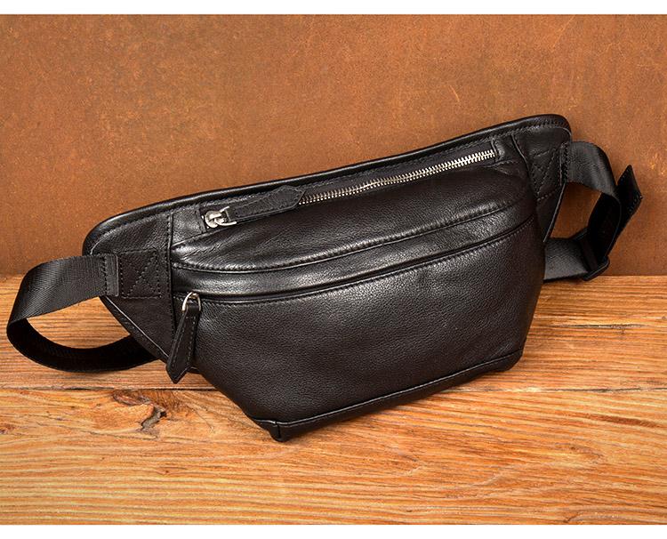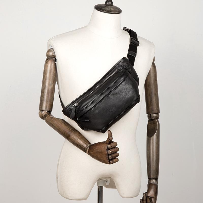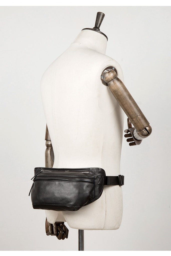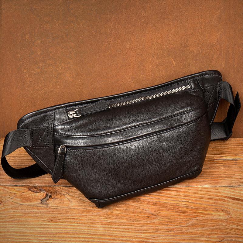 Design: Black Leather Fanny Pack Mens Waist Bag Hip Pack Belt Bags Bumbag for Men