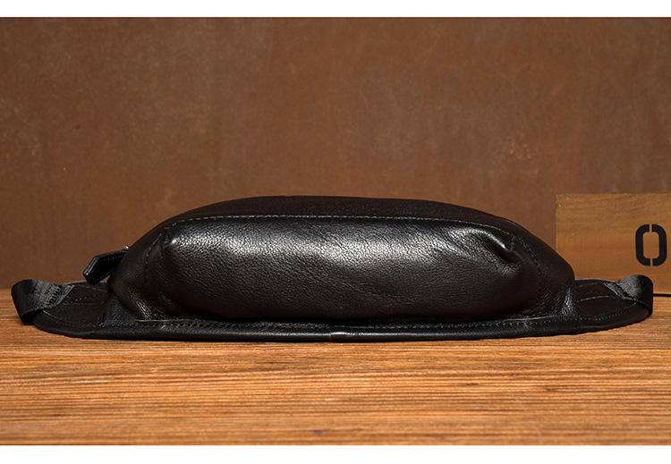 Cool Black Leather Fanny Pack Mens Waist Bag Hip Pack Black Belt Bags Bumbag for Men