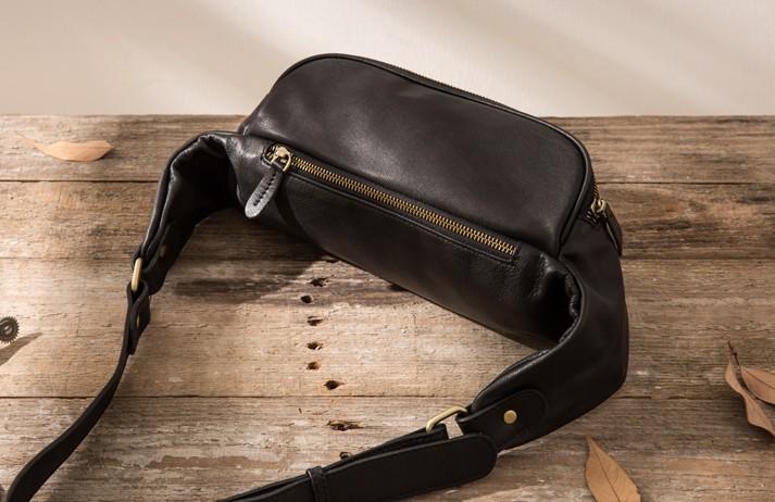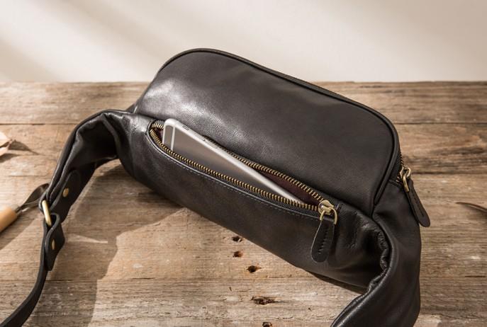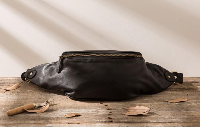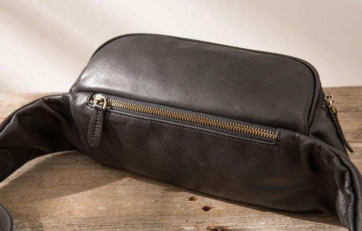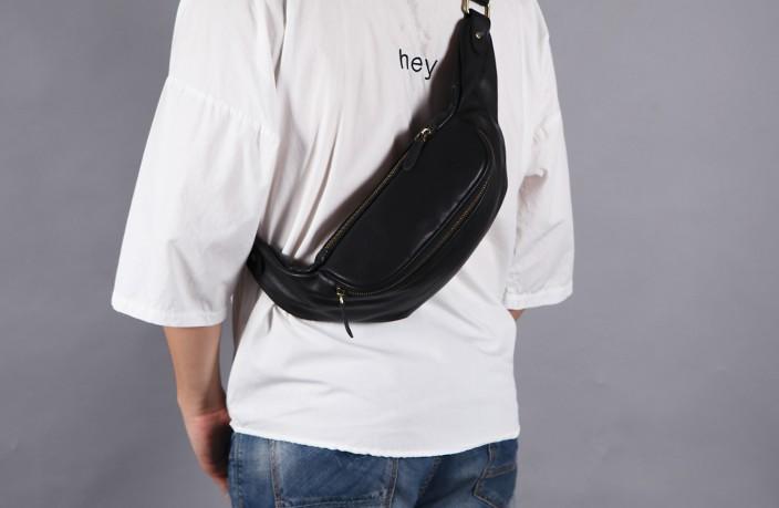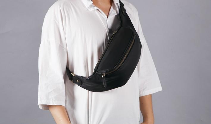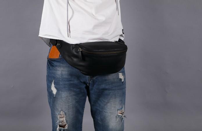 Design: Black Leather Fanny Packs Mens Waist Bag Hip Pack Belt Bag for Men