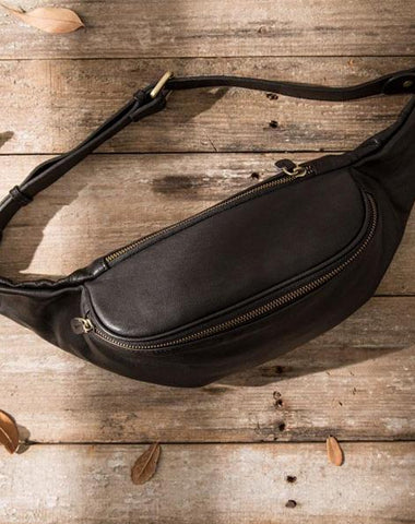 Style: Black Leather Fanny Packs Mens Waist Bag Hip Pack Belt Bag for Men