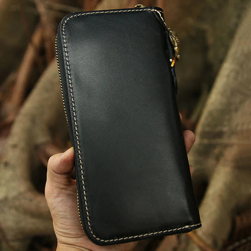 Style: Leather Ganesha Tooled Biker Wallet Cool Handmade Leather Chain Wallet for Men