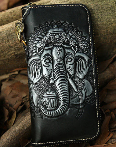 Design: Leather Ganesha Tooled Biker Wallet Cool Handmade Leather Chain Wallet for Men