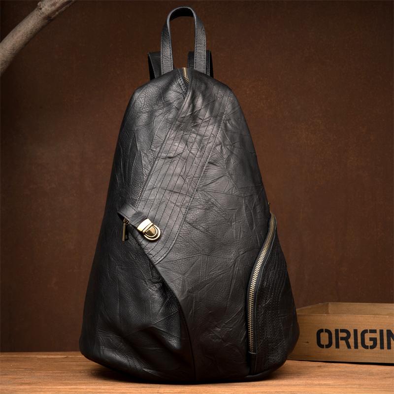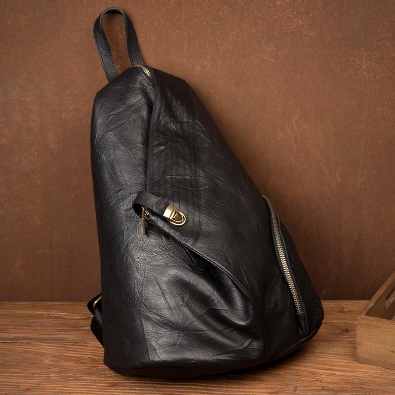 Design: Black Leather Mens 11 inches Cool Sling Bags Crossbody Bag Chest Bags for men