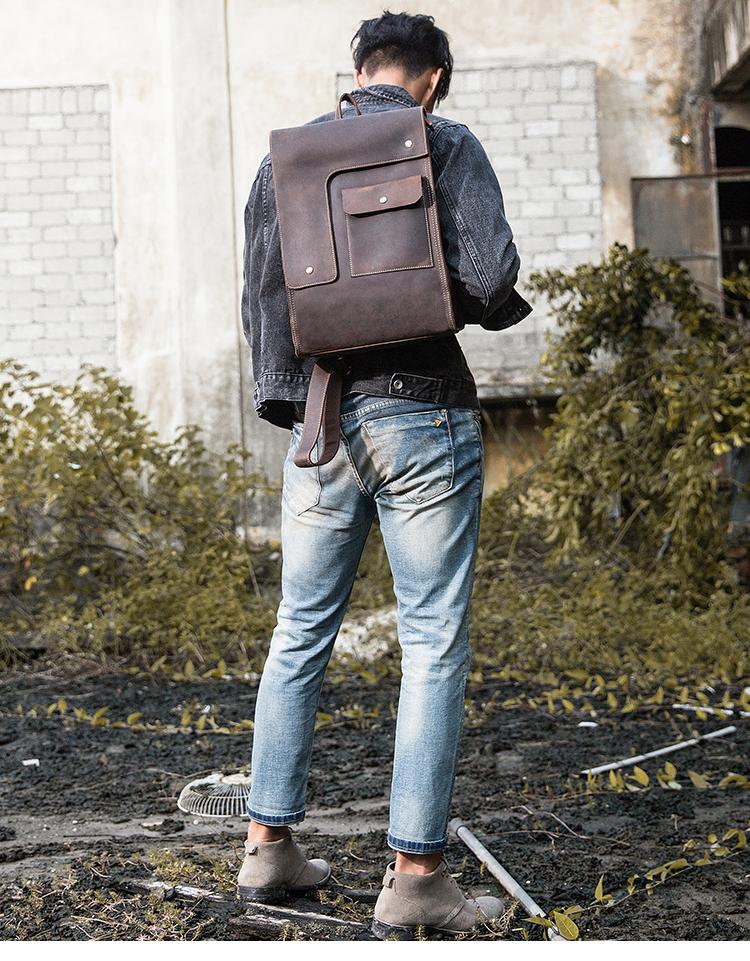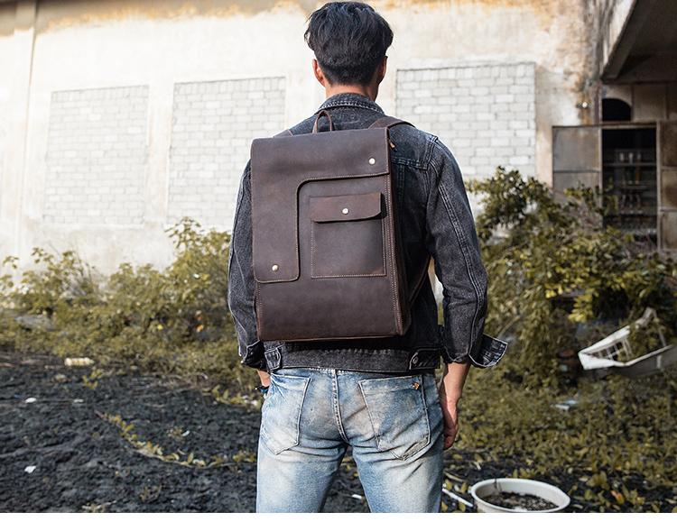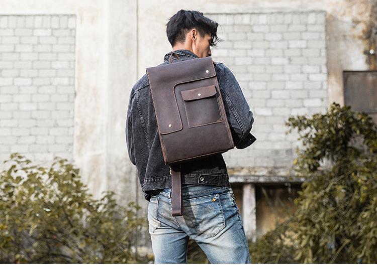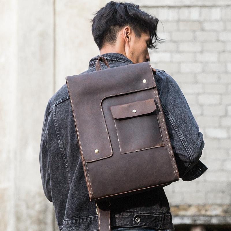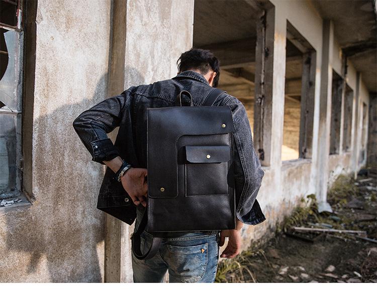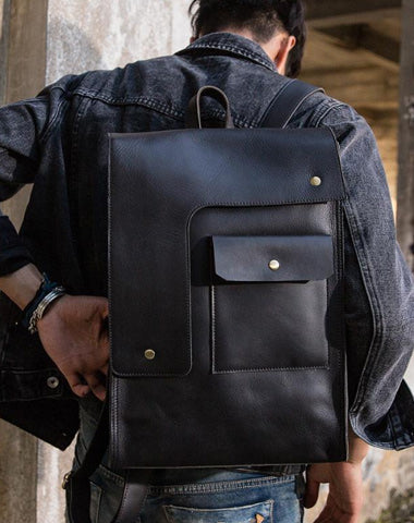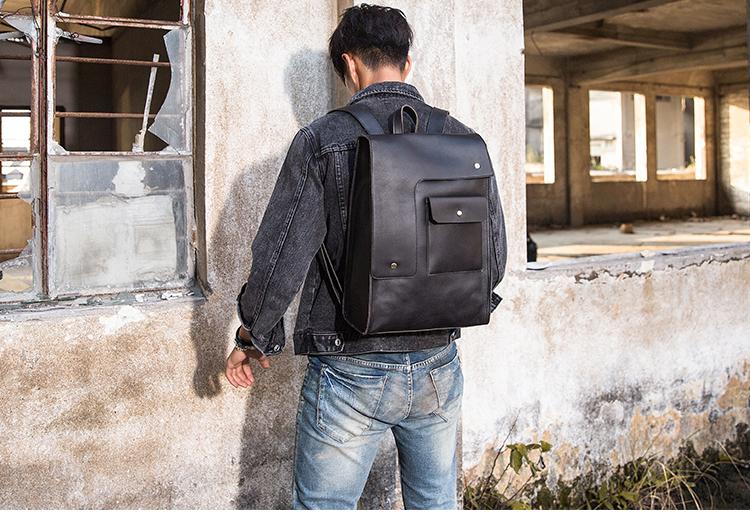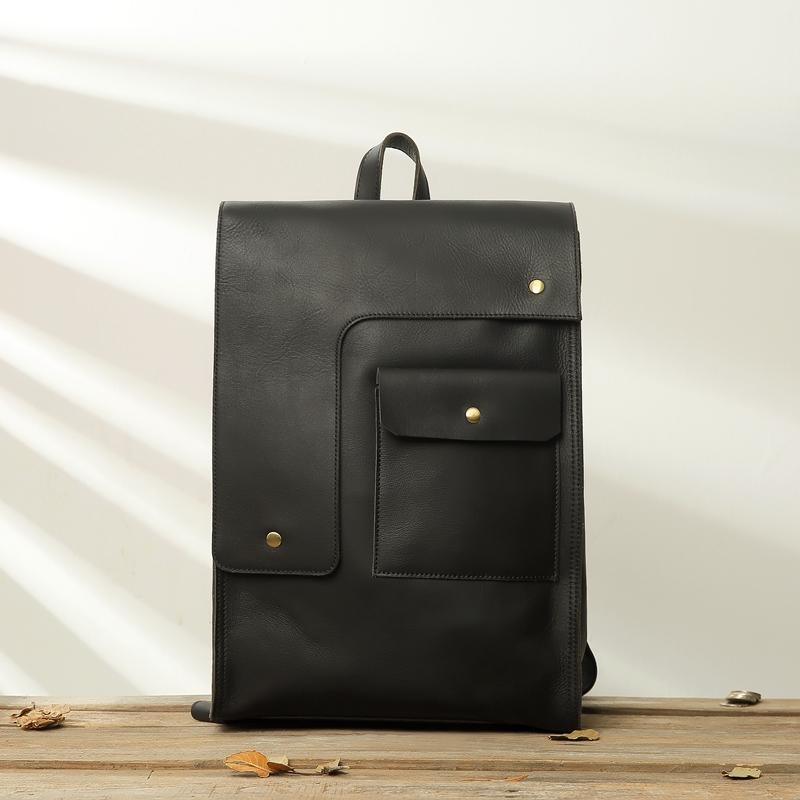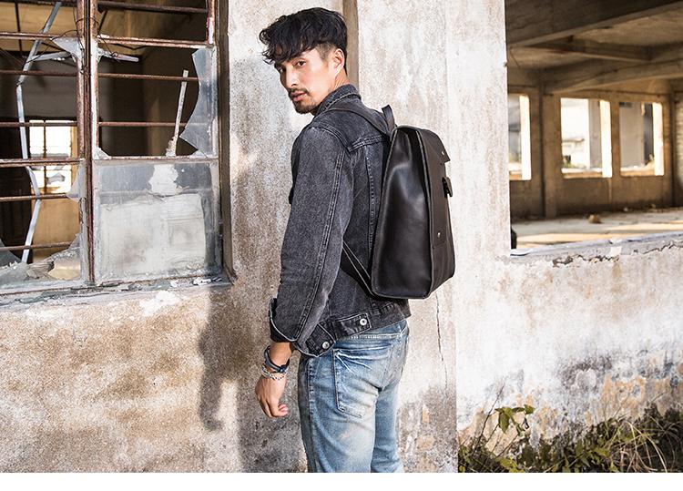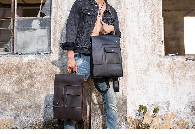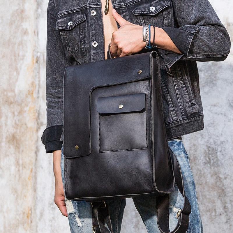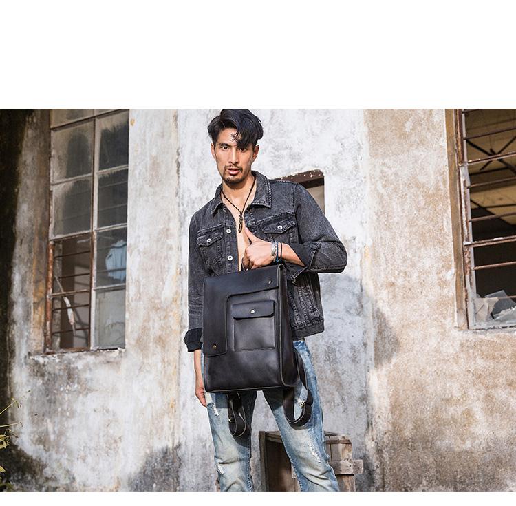 Design: Black Leather Men's 13 inches Large Briefcase Computer Backpack Black Large Travel Backpack Black Large College Backpack For Men