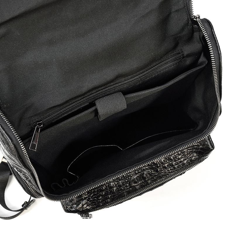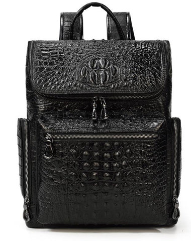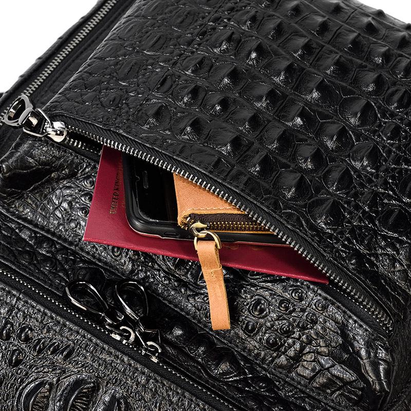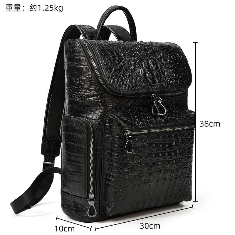 Design: Black Crocodile Pattern Leather Men's 14 inches Computer Backpack Black Travel Backpack College Backpack For Men