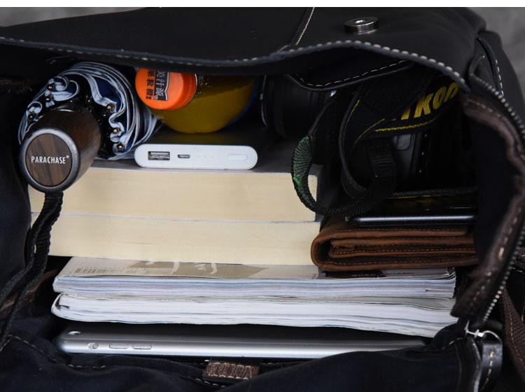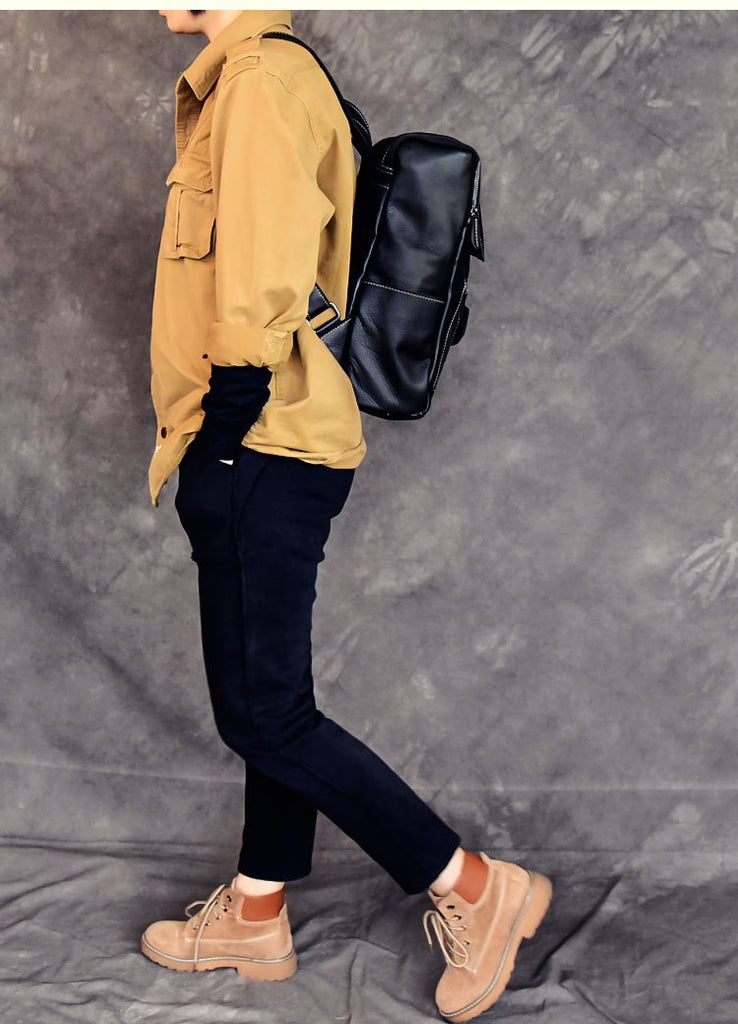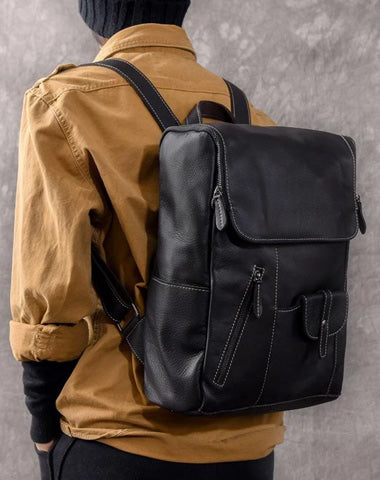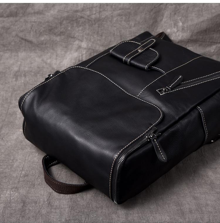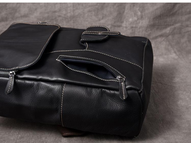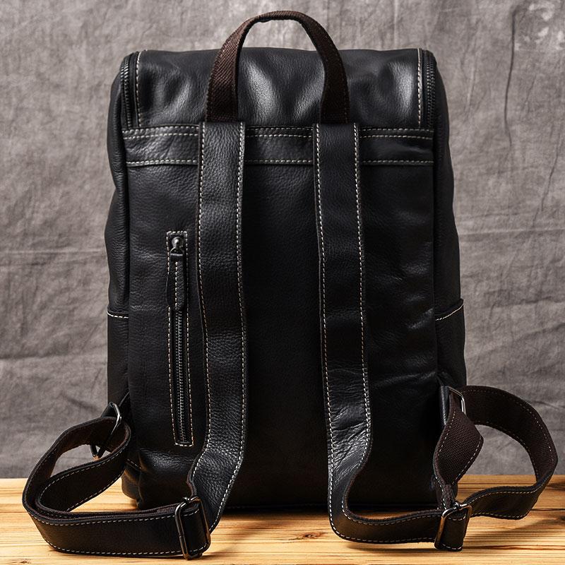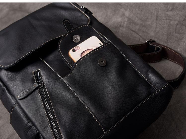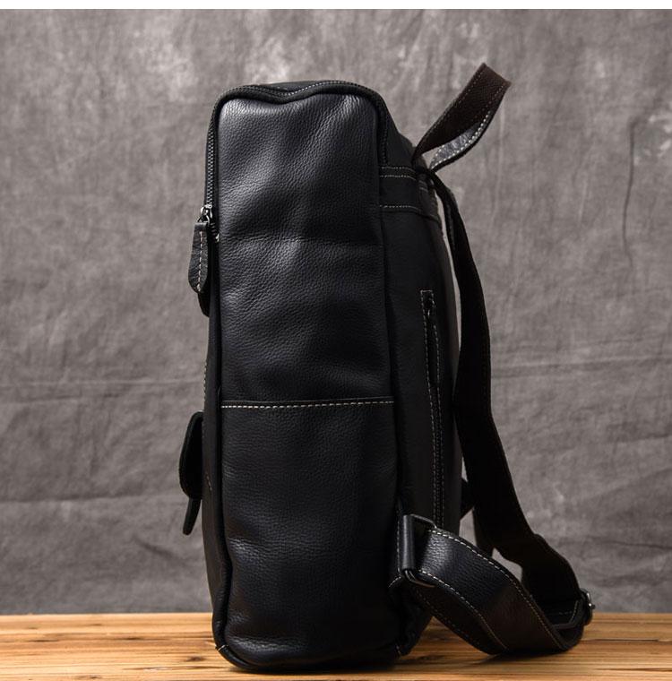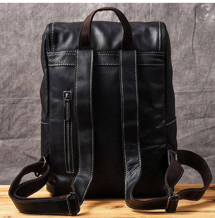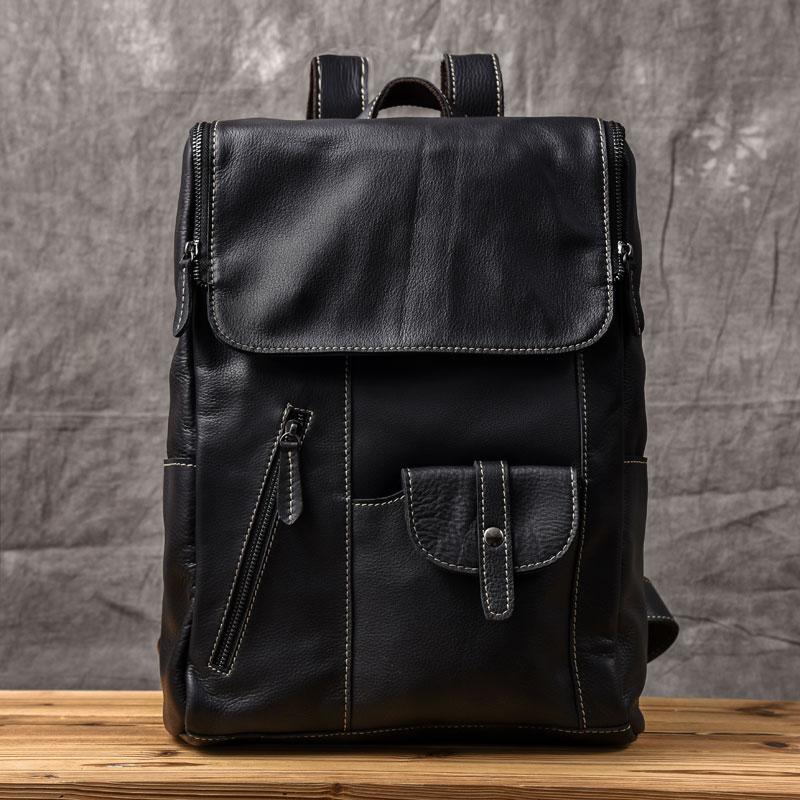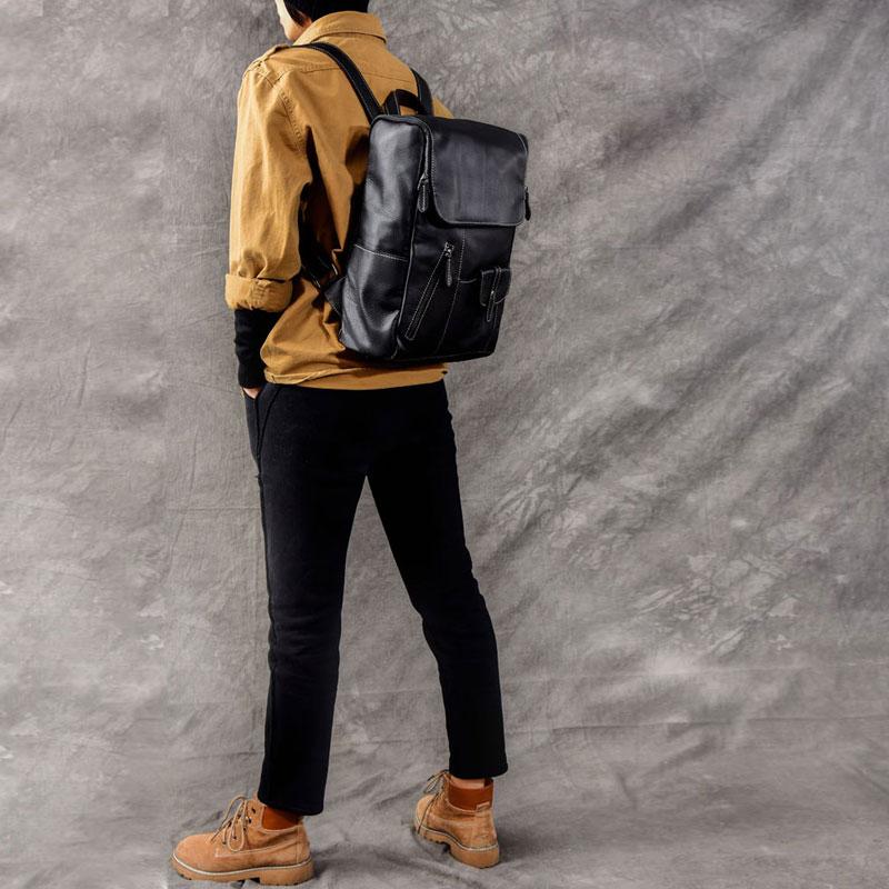 Design: Black Leather Mens 14" Laptop Backpack Multi-pocket Backpack Travel Backpack College Backpack for Men