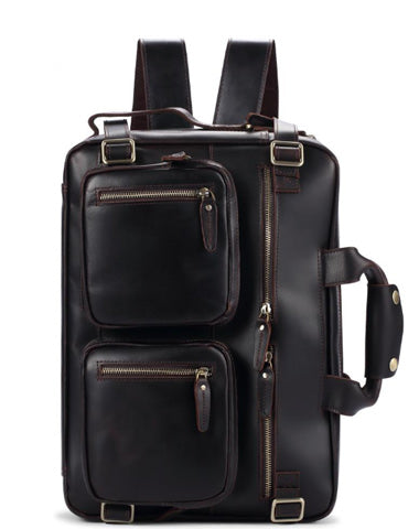 Design: Black Leather Men's 15 inches Large Multi-function Computer Backpack Black Large Travel Backpack Black Large College Backpack For MenOverview:
