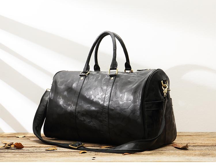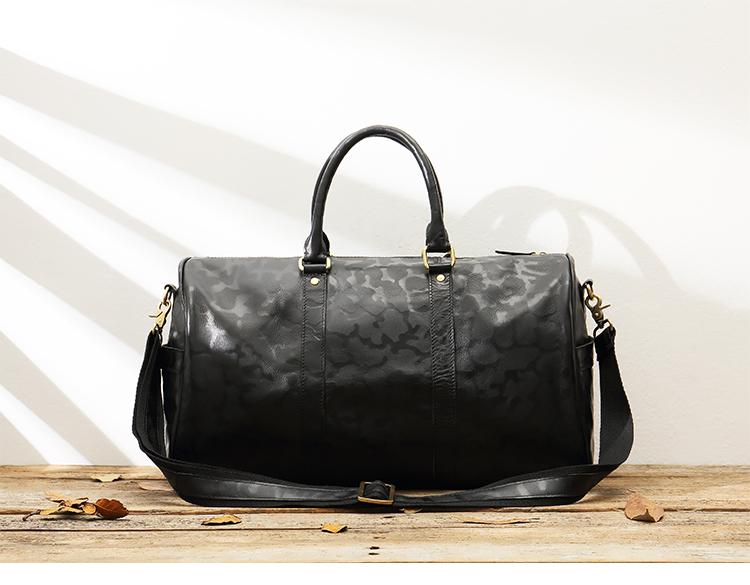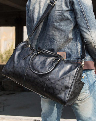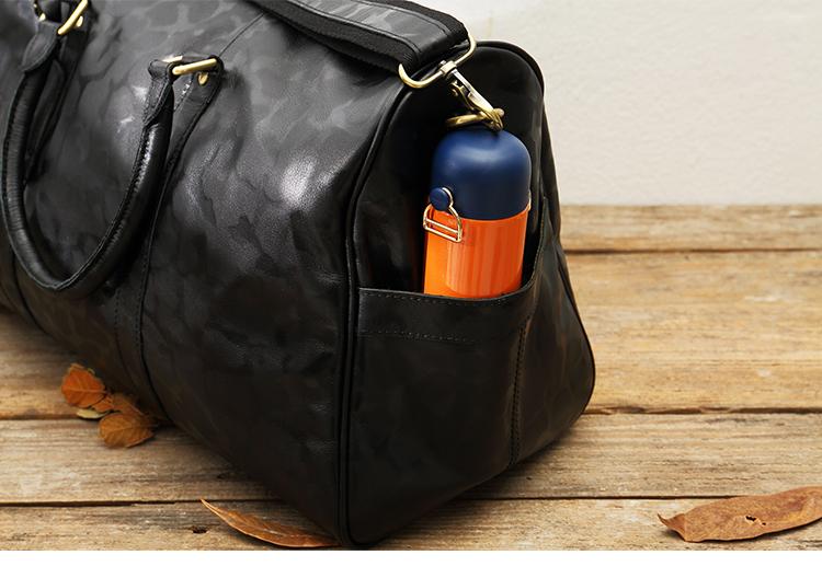 Design: Black Leather Mens 16 inches Weekender Crossbody Bag Travel Bags Shoulder Bags for men