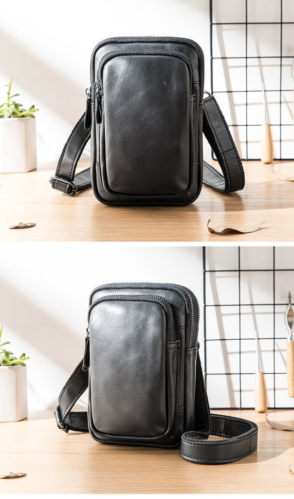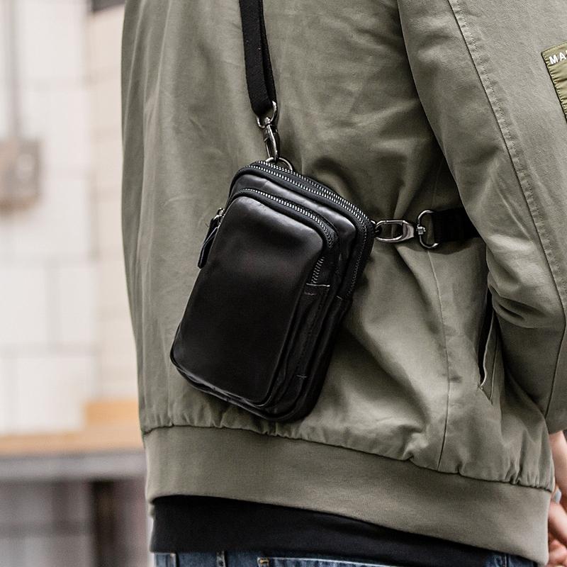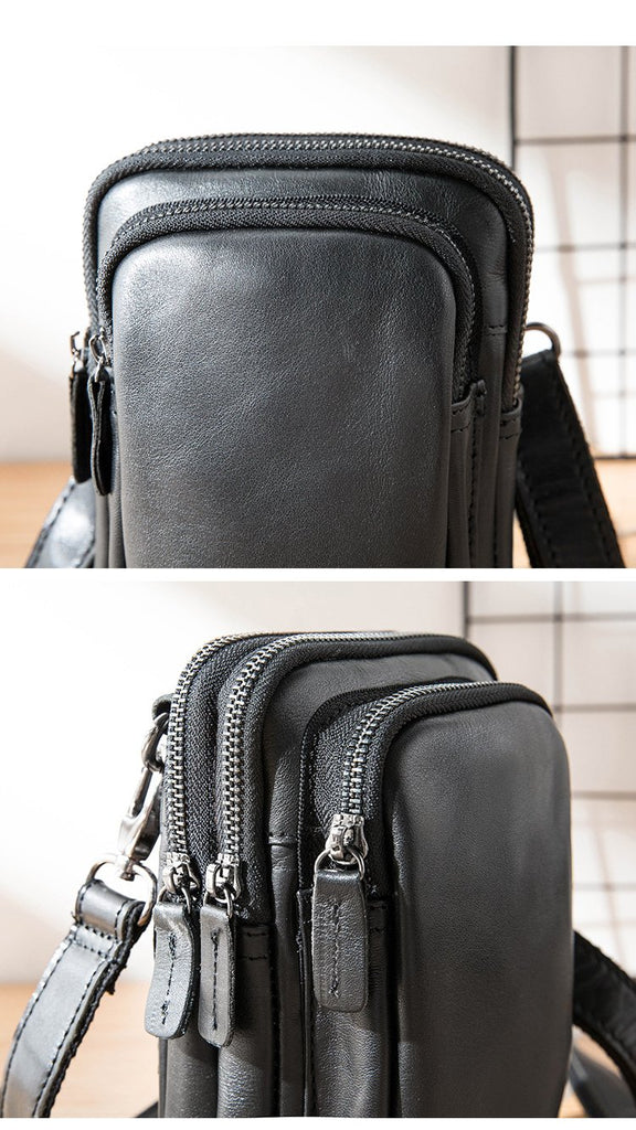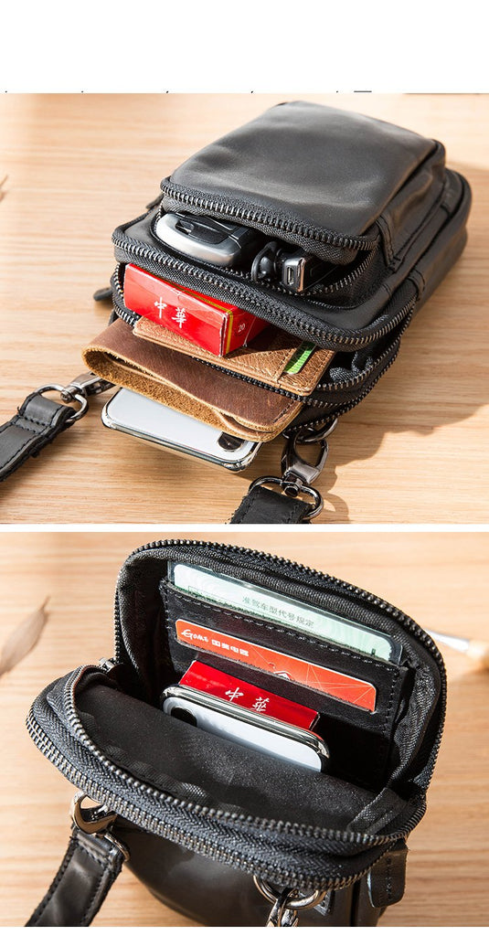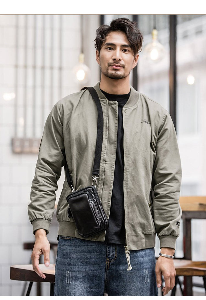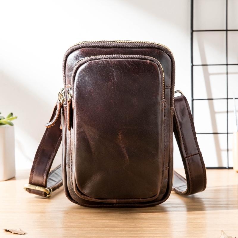 Style: Black Leather Mens 8 inches Brown Messenger Bag Phone Bag Sling Bag For Men