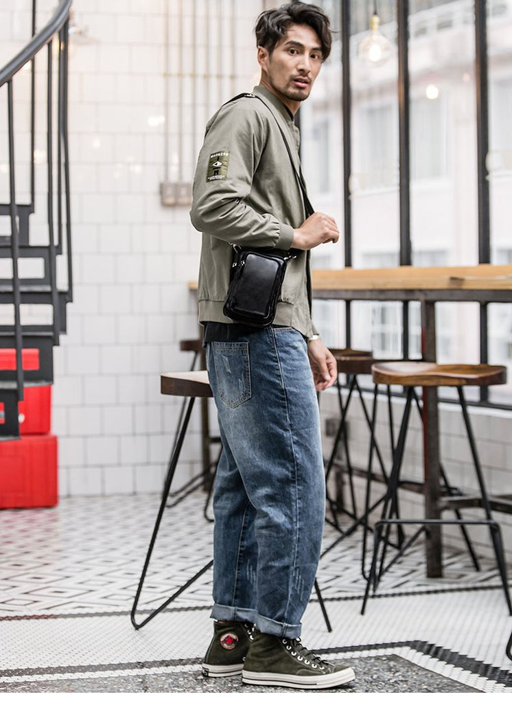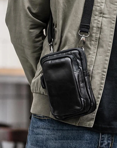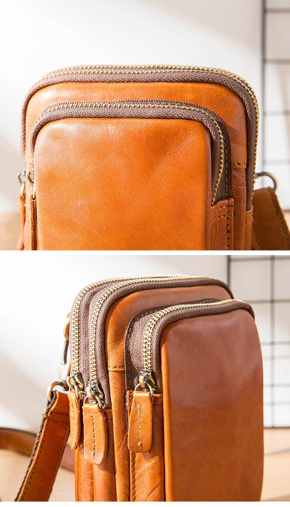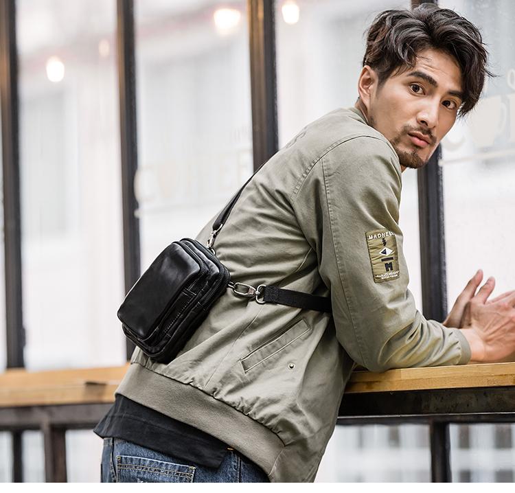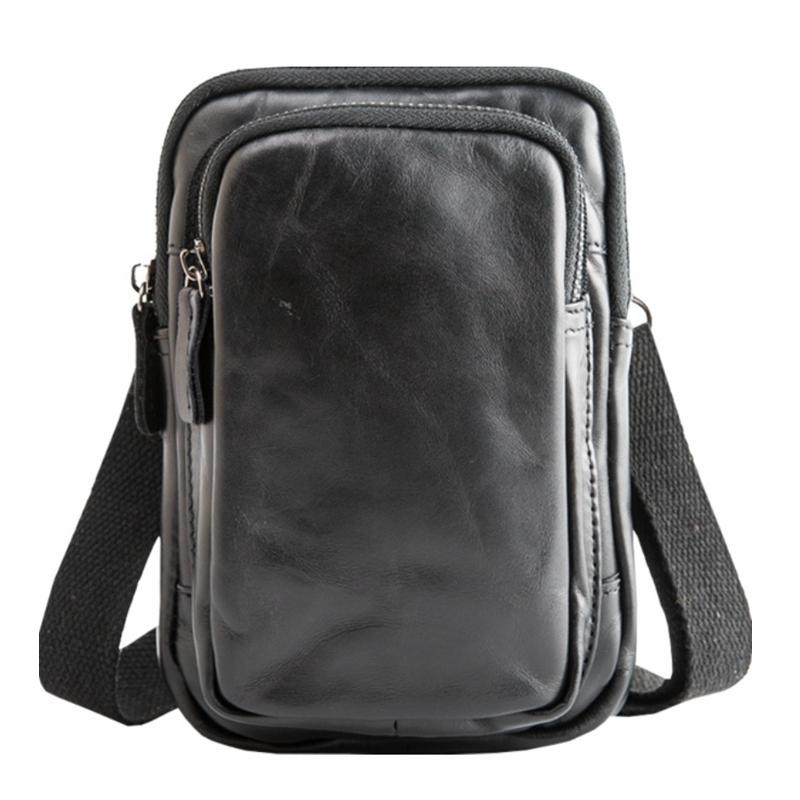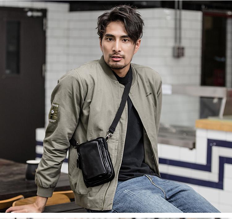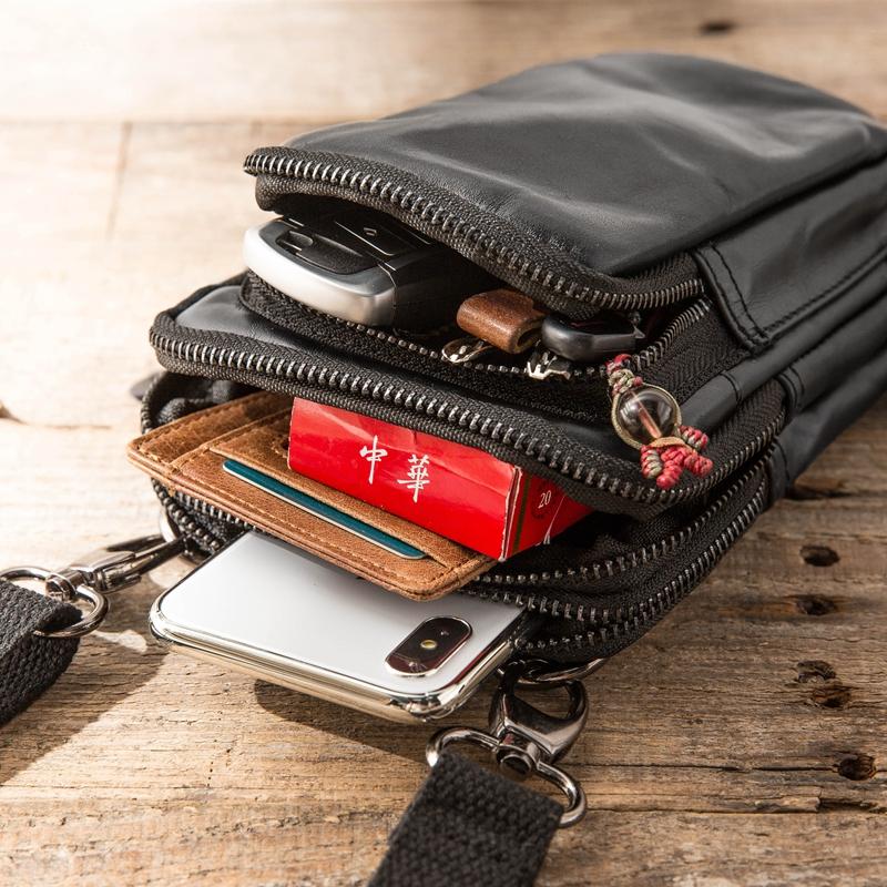 Style: Black Leather Mens 8 inches Brown Messenger Bag Phone Bag Sling Bag For Men