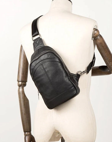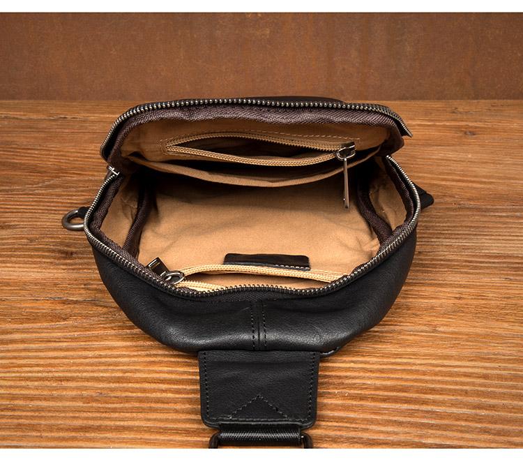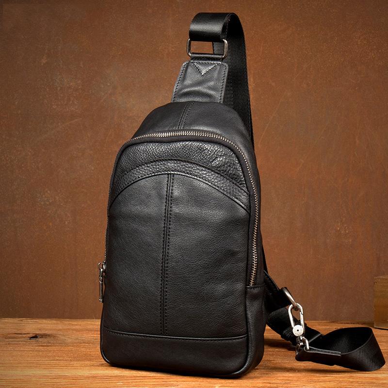 Design: Black Leather Mens 8 inches Cool Sling Bag Crossbody Bag Chest Bag for men
