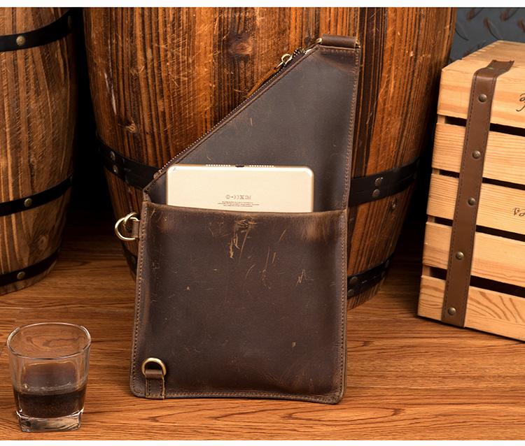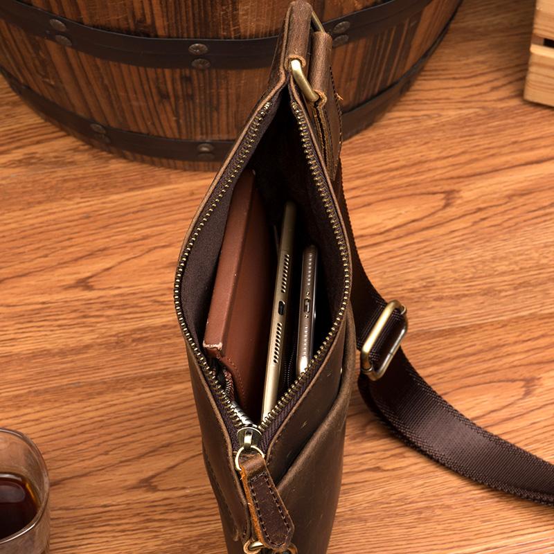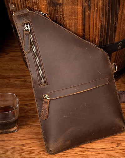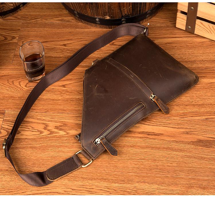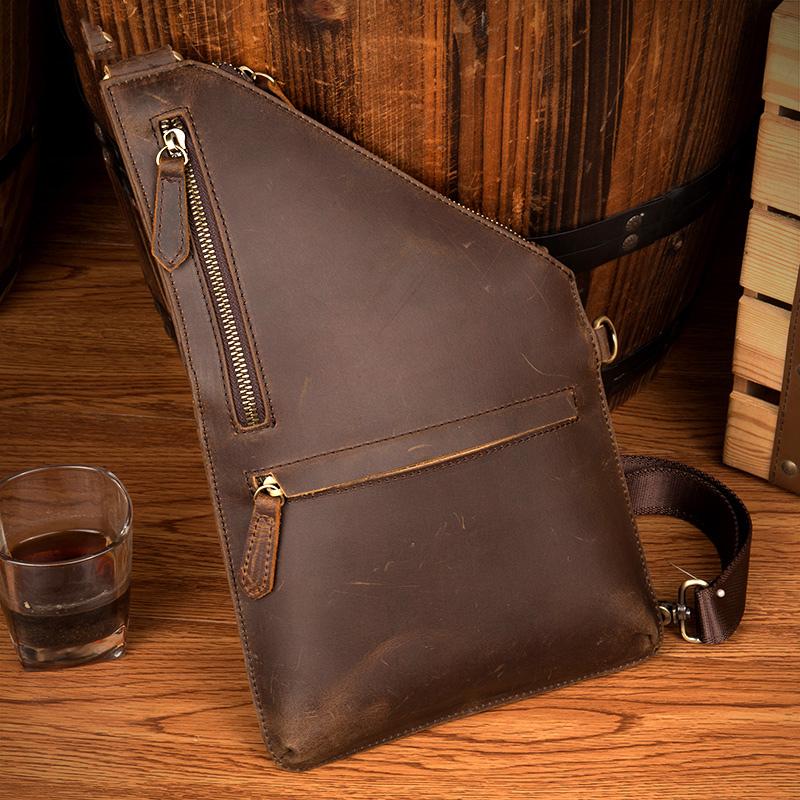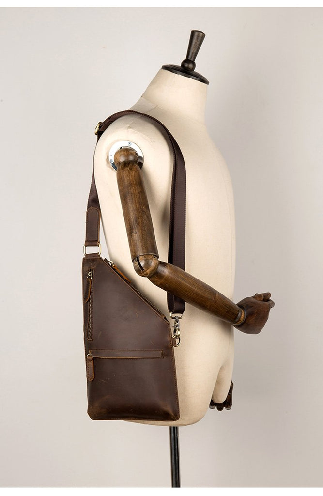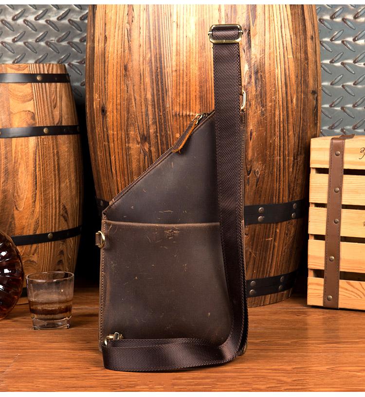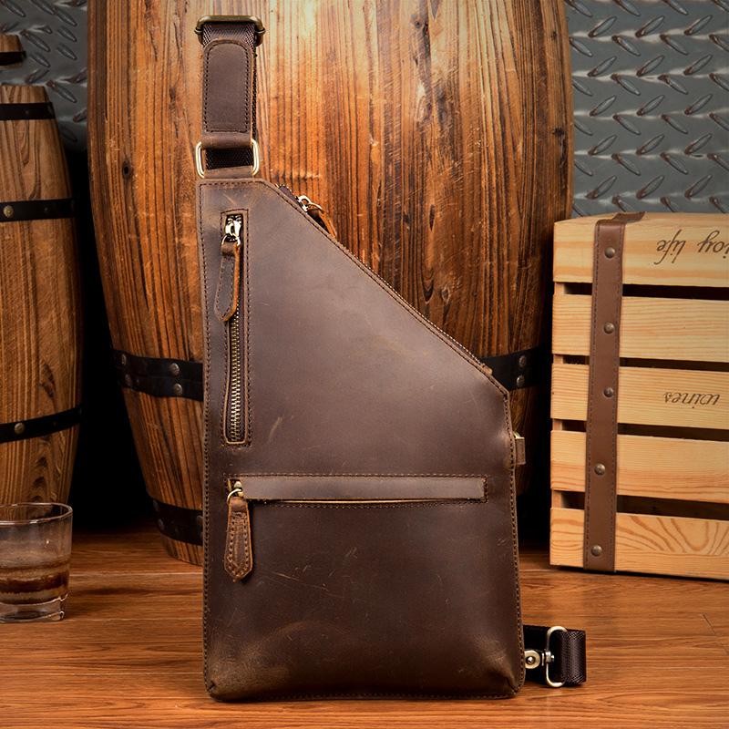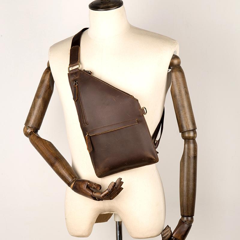 Style: Dark Brown Leather Mens 8 inches Cool Sling Bags Crossbody Bag Chest Bag for men