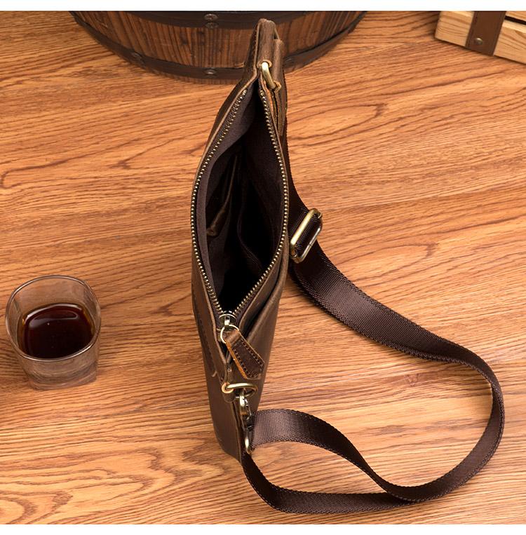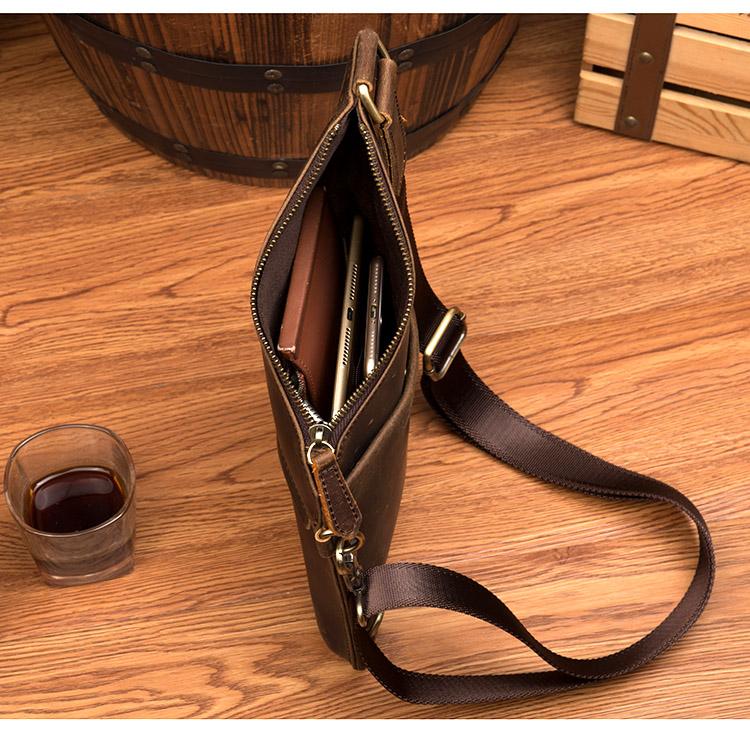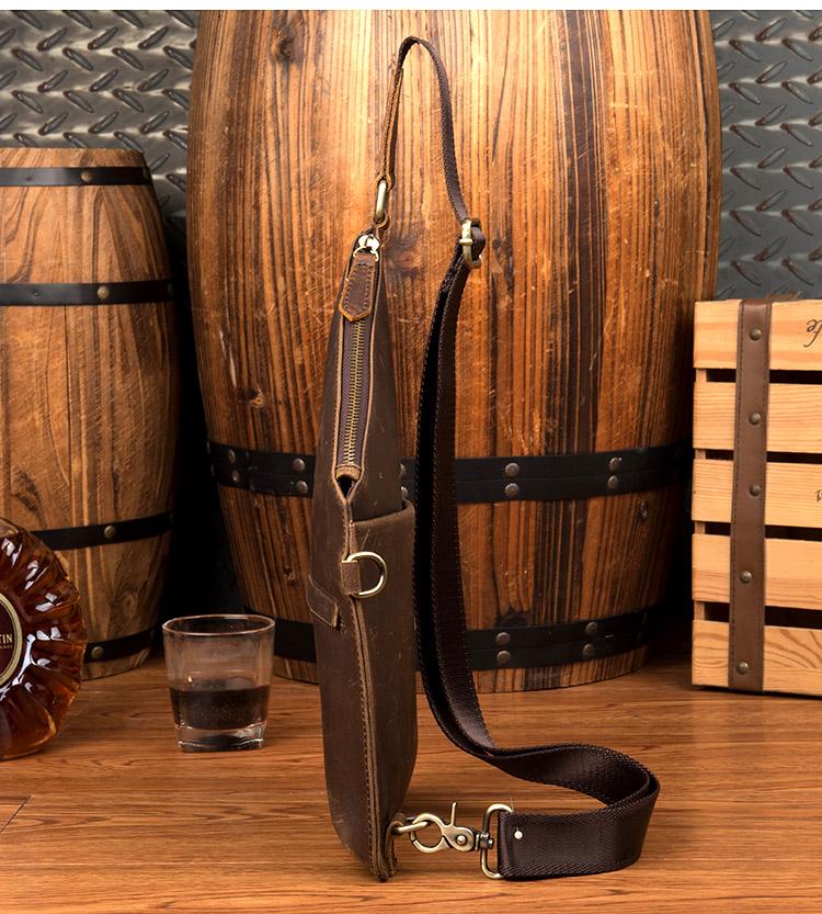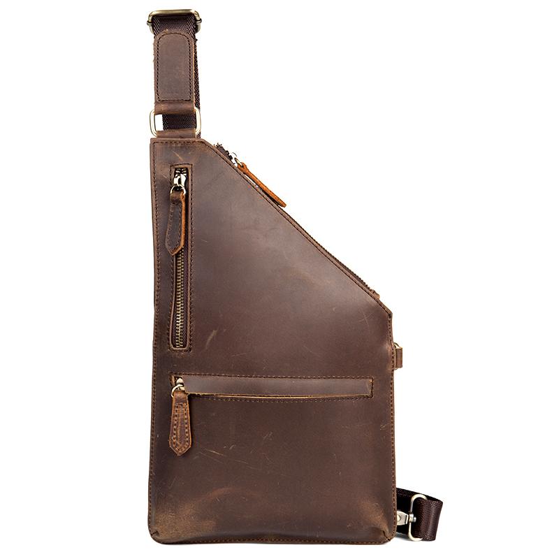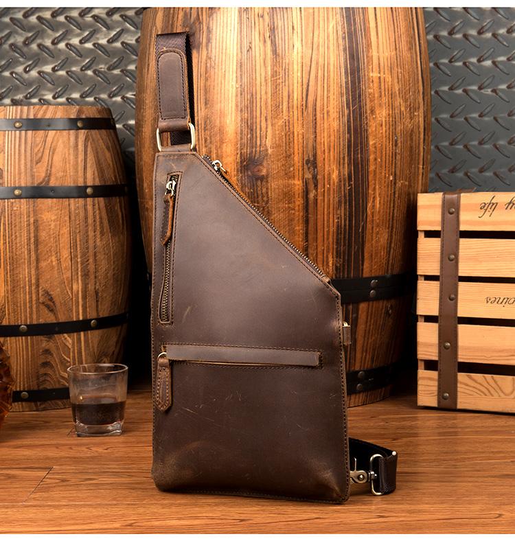 Design: Dark Brown Leather Mens 8 inches Cool Sling Bags Crossbody Bag Chest Bag for men