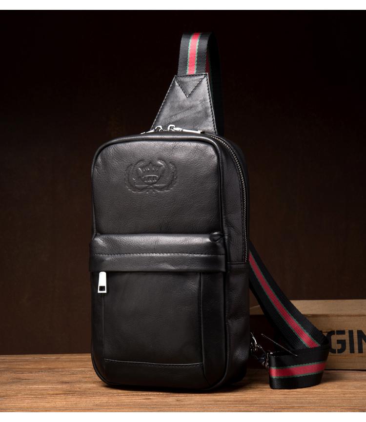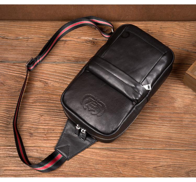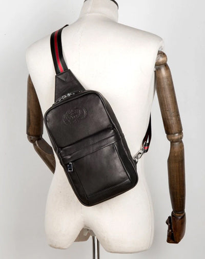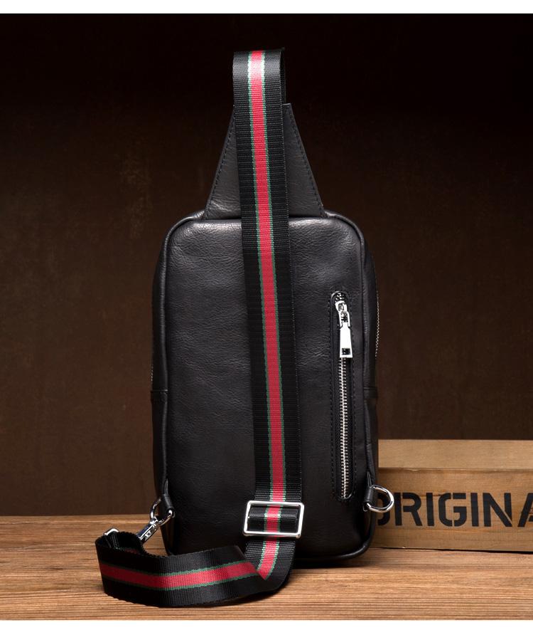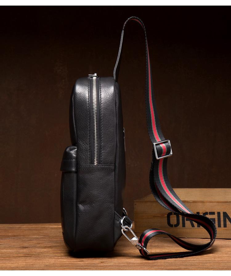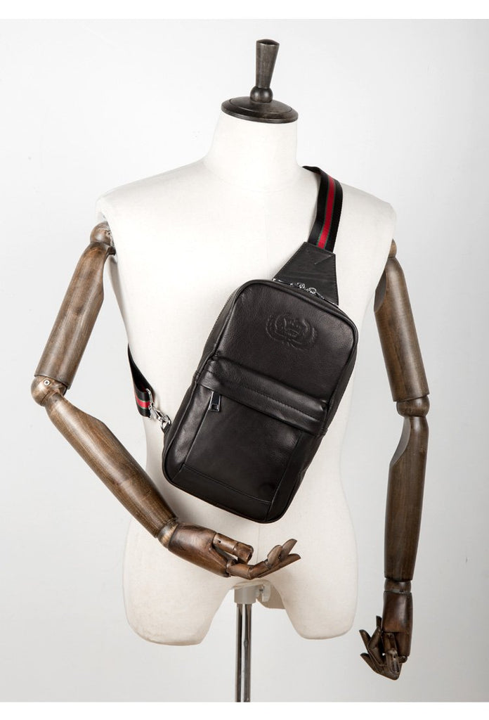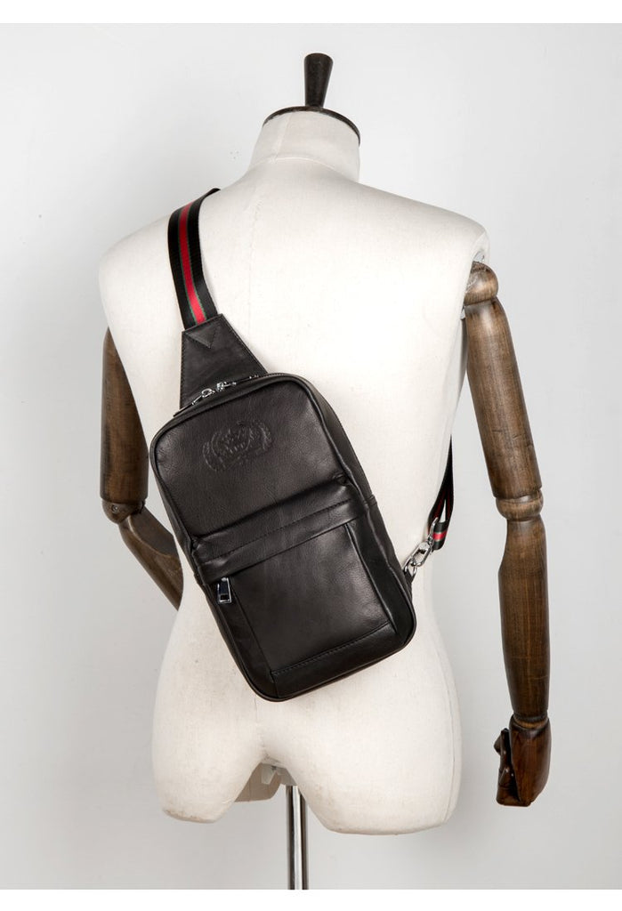 Design: Black Leather Mens 8 inches Cool Sling Bags Crossbody Bag Chest Bags for men