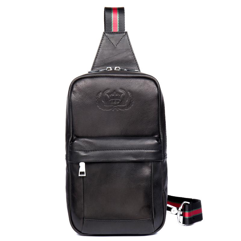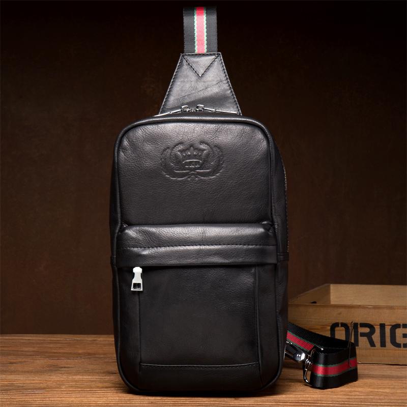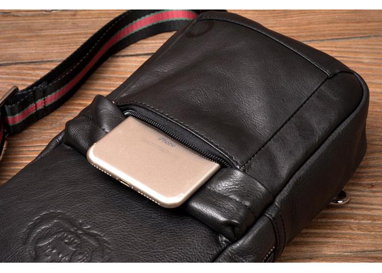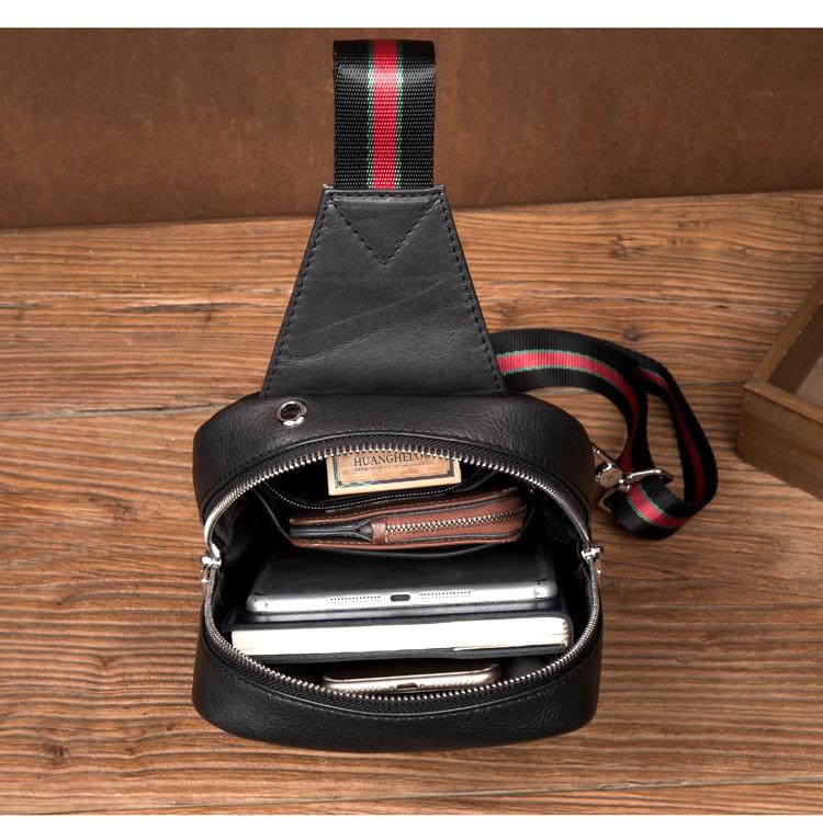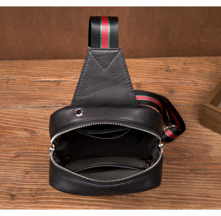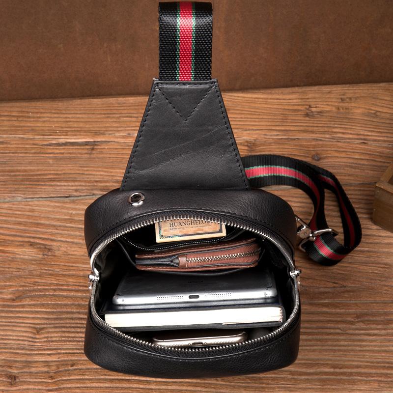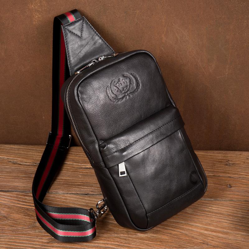 Design: Black Leather Mens 8 inches Cool Sling Bags Crossbody Bag Chest Bags for men