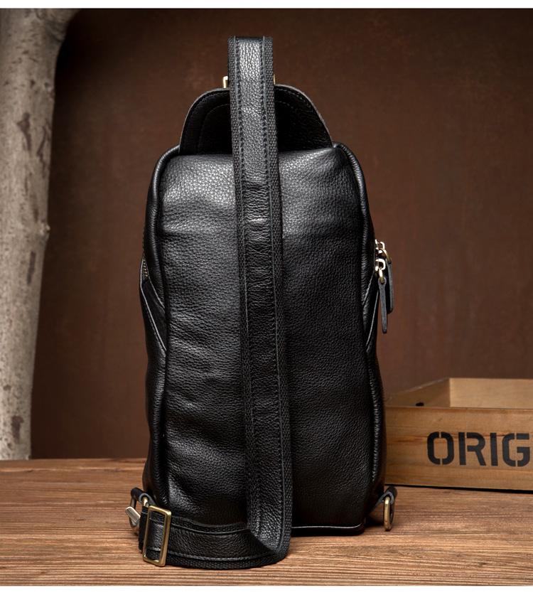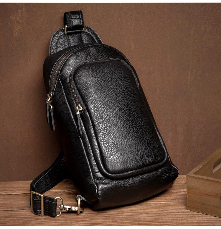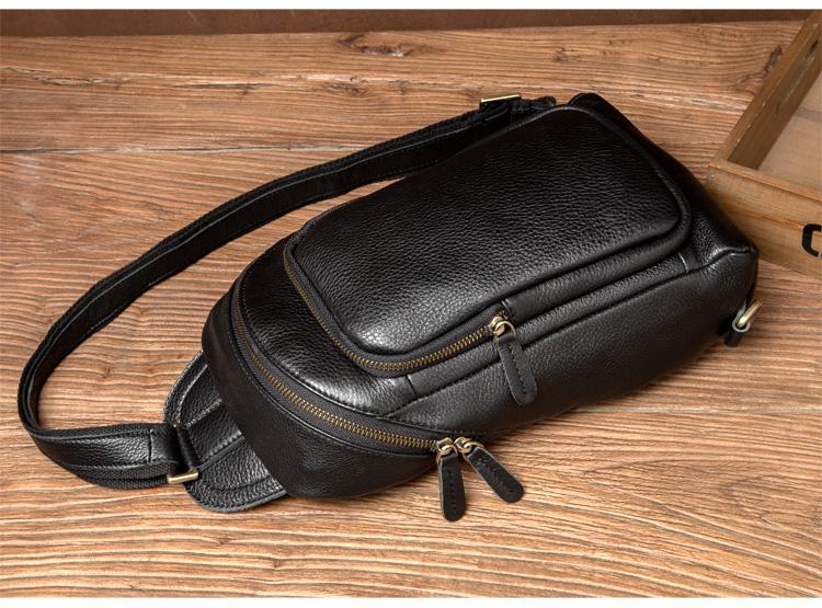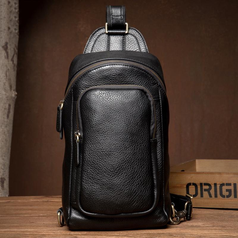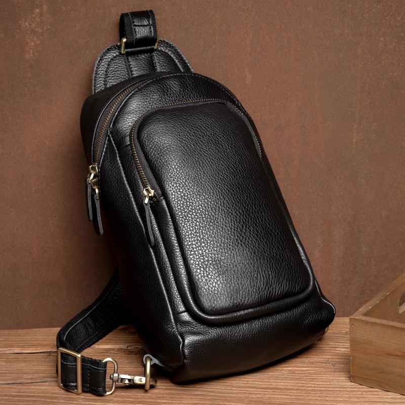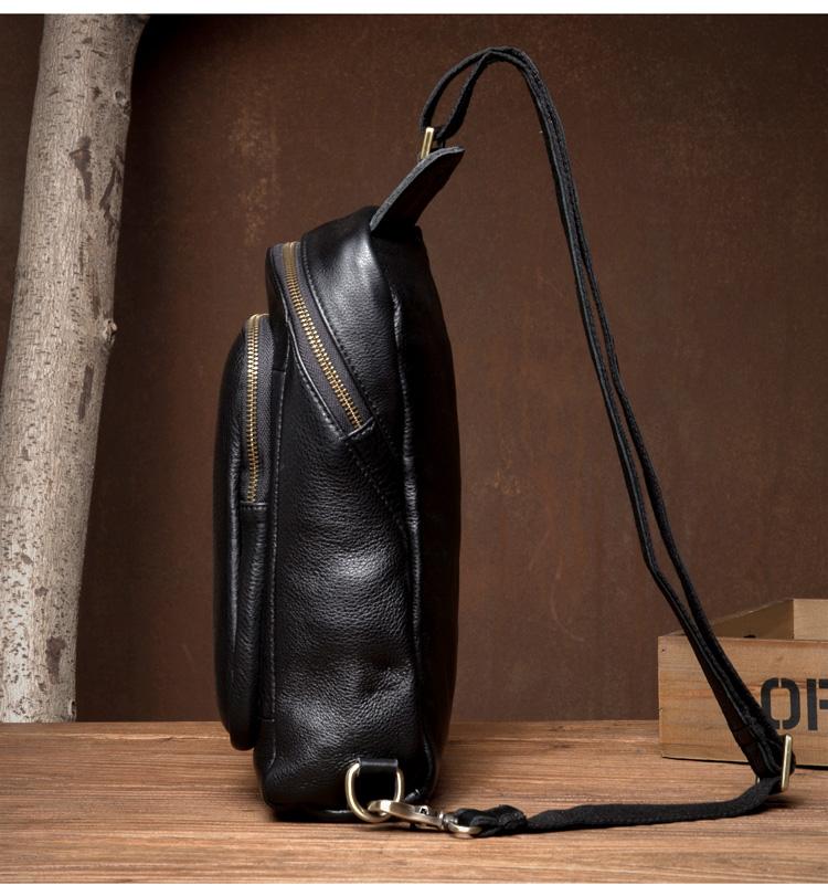 Design: Black Leather Mens 8 inches Cool Sling Bags Crossbody Bags Chest Bags for men