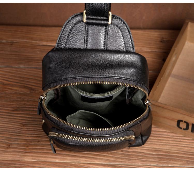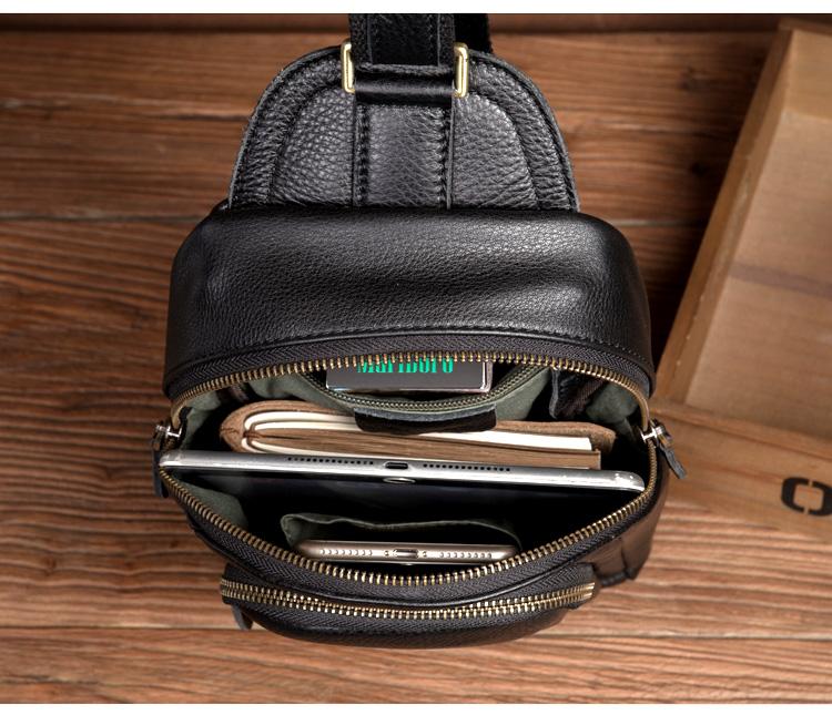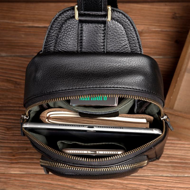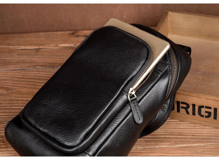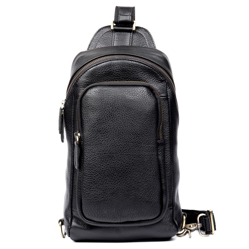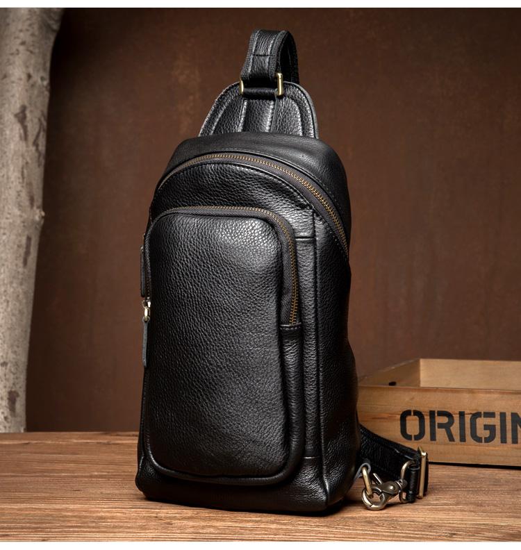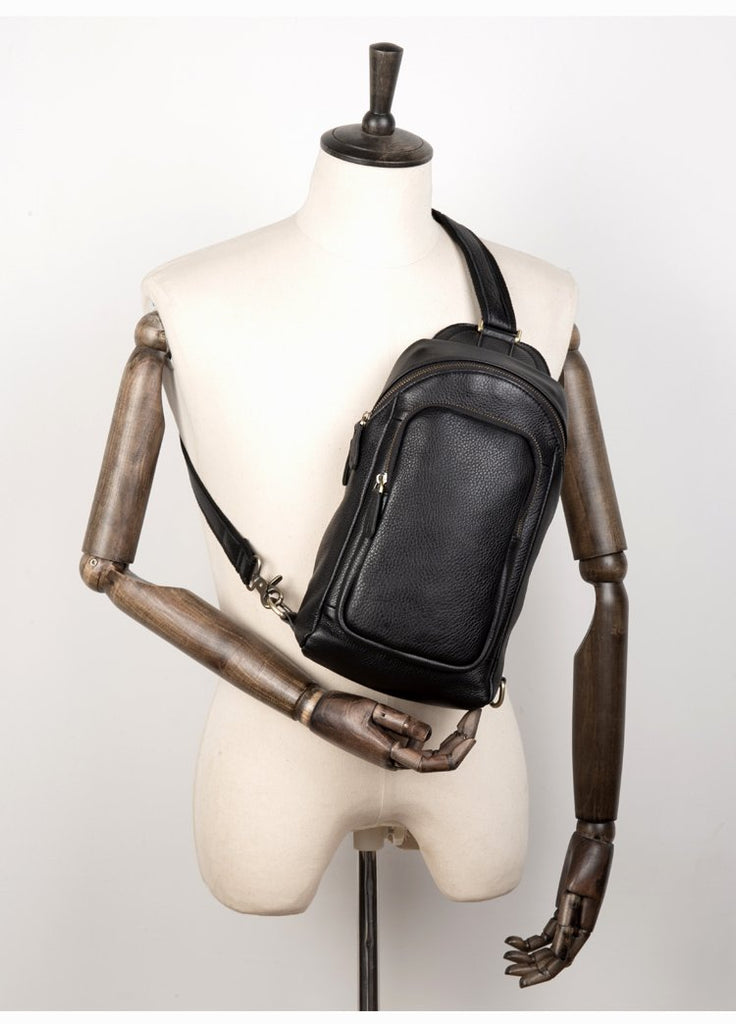 Design: Black Leather Mens 8 inches Cool Sling Bags Crossbody Bags Chest Bags for men