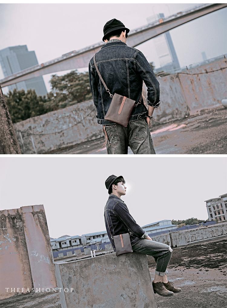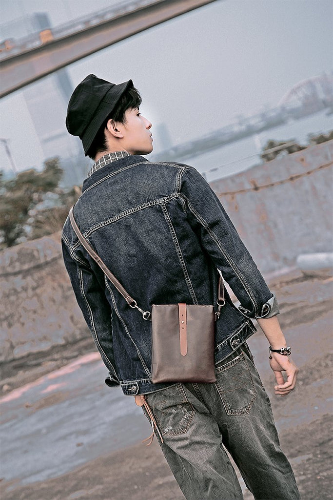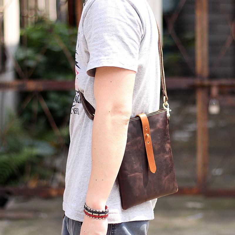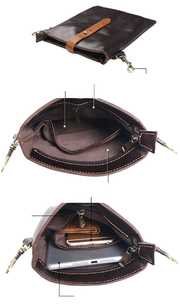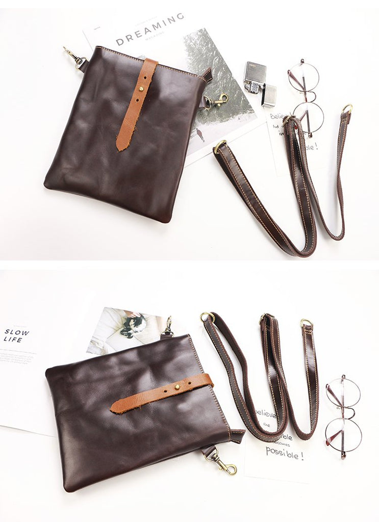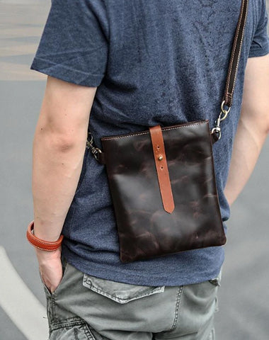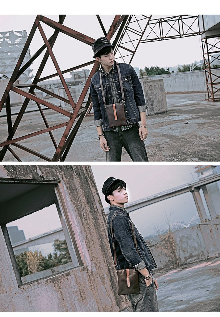 Design: Dark Coffee Leather Mens 8 inches Courier Bag Messenger Bags Black Small Postman Bag For Men