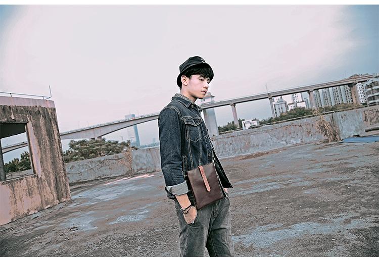 Style: Dark Coffee Leather Mens 8 inches Courier Bag Messenger Bags Black Small Postman Bag For Men